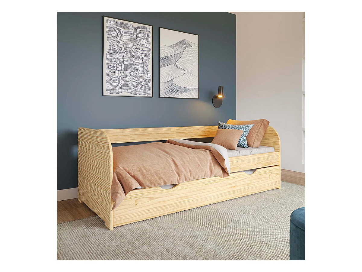 Lit banquette gigogne 80x200 cm bois massif bois EZRA