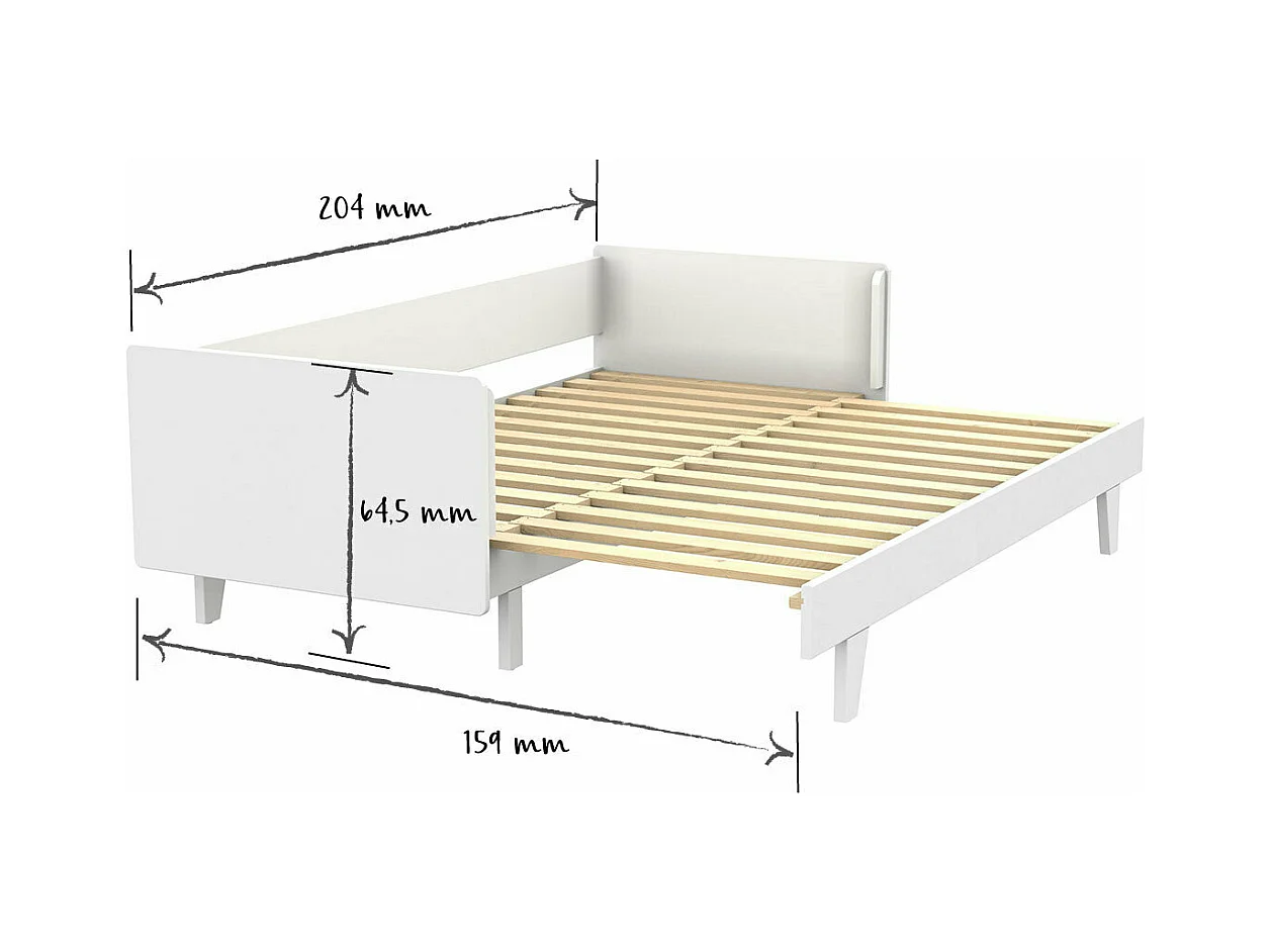 Lit gigogne 80x200 cm bois massif blanc CAPRI