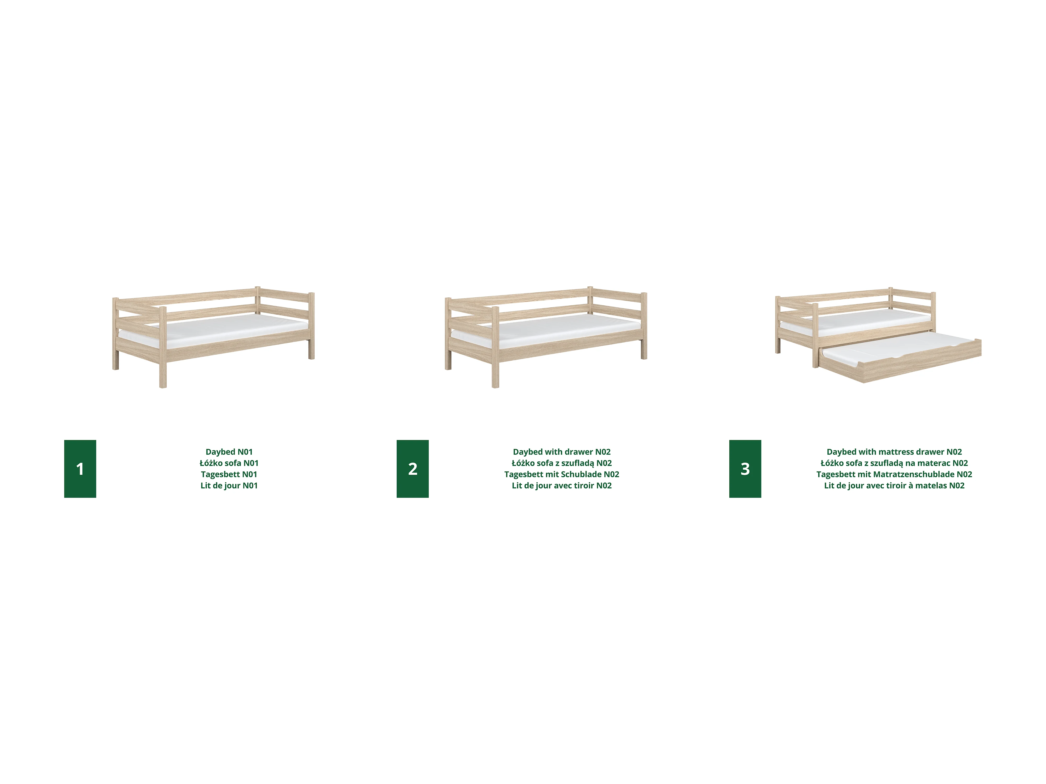Lit banquette gigogne en chêne N01 Chêne Blanchi 80x180