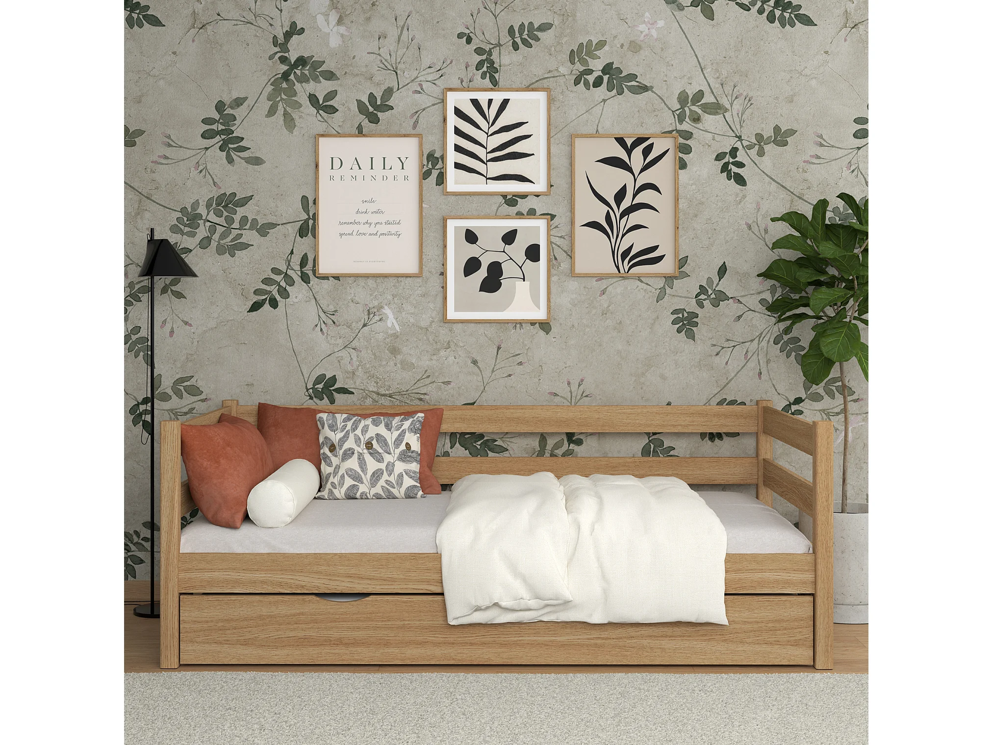 Lit banquette gigogne en chêne N01 Chêne Naturel 100x200