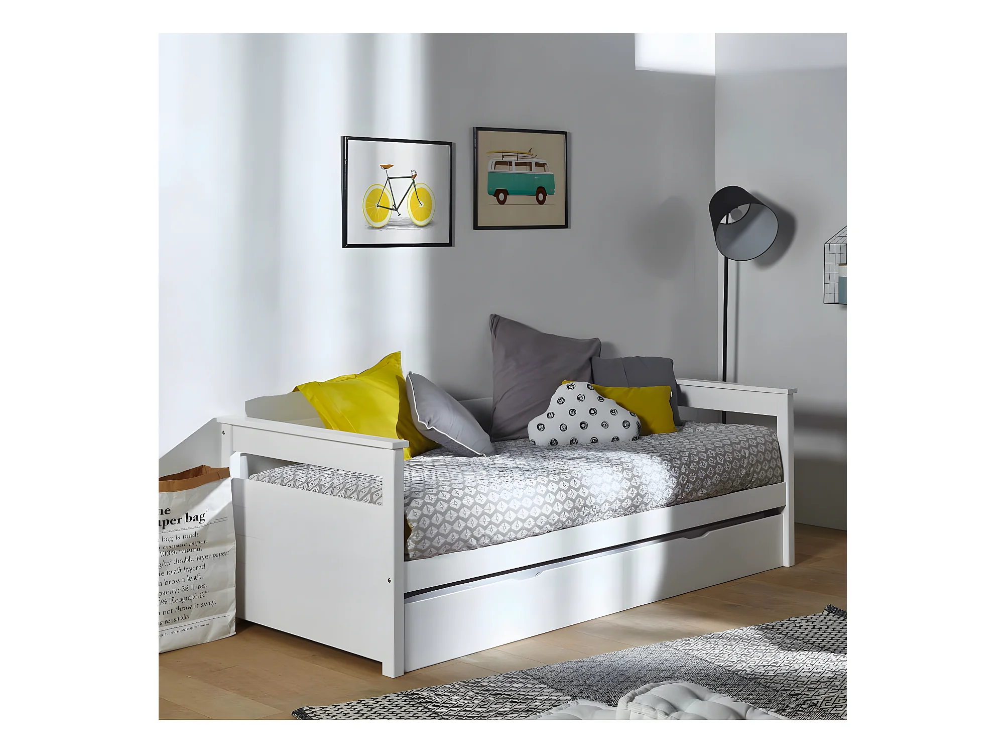 Lit banquette gigogne 80x190 cm bois massif bois naturel IZAO