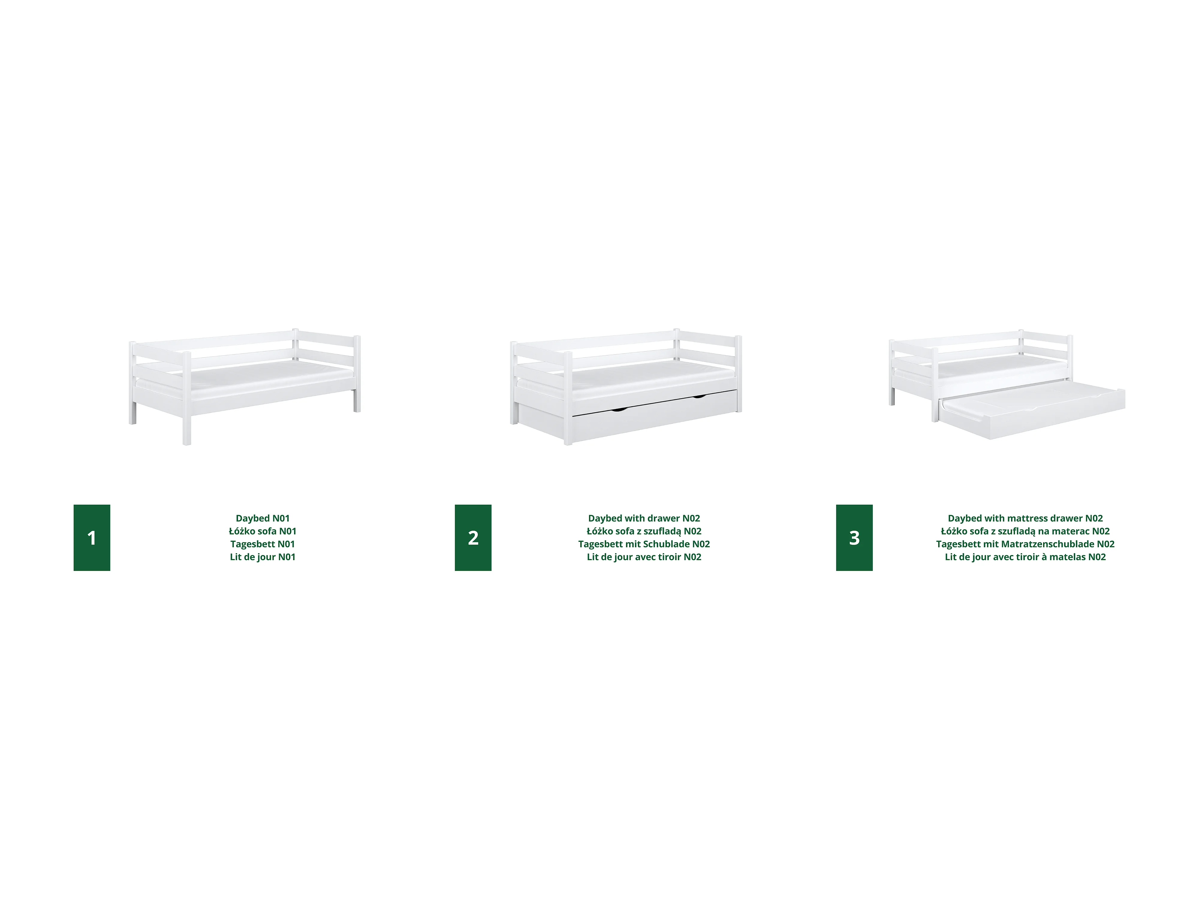 Lit banquette gigogne N01 Blanc 120x200