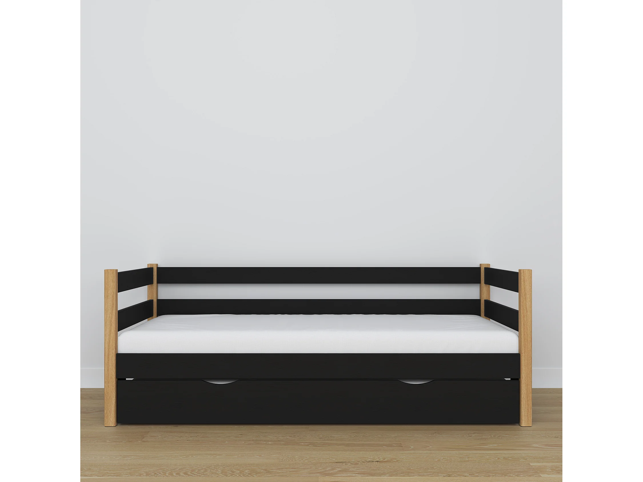Lit banquette gigogne N01 Noir / Chêne Naturel 100x200