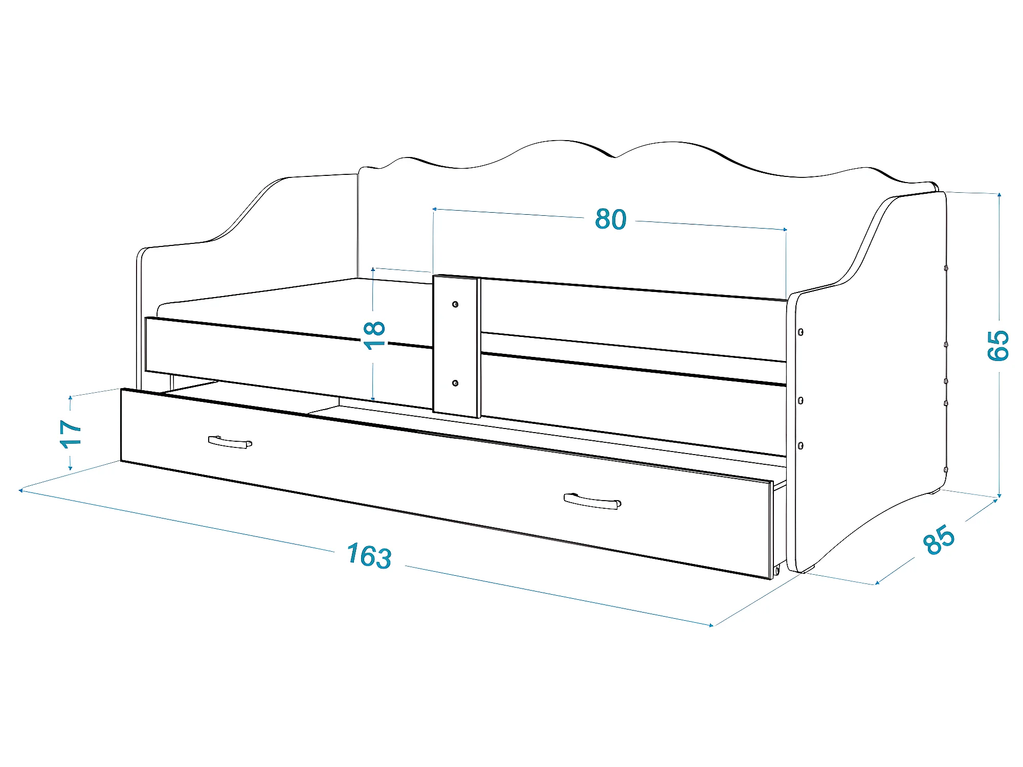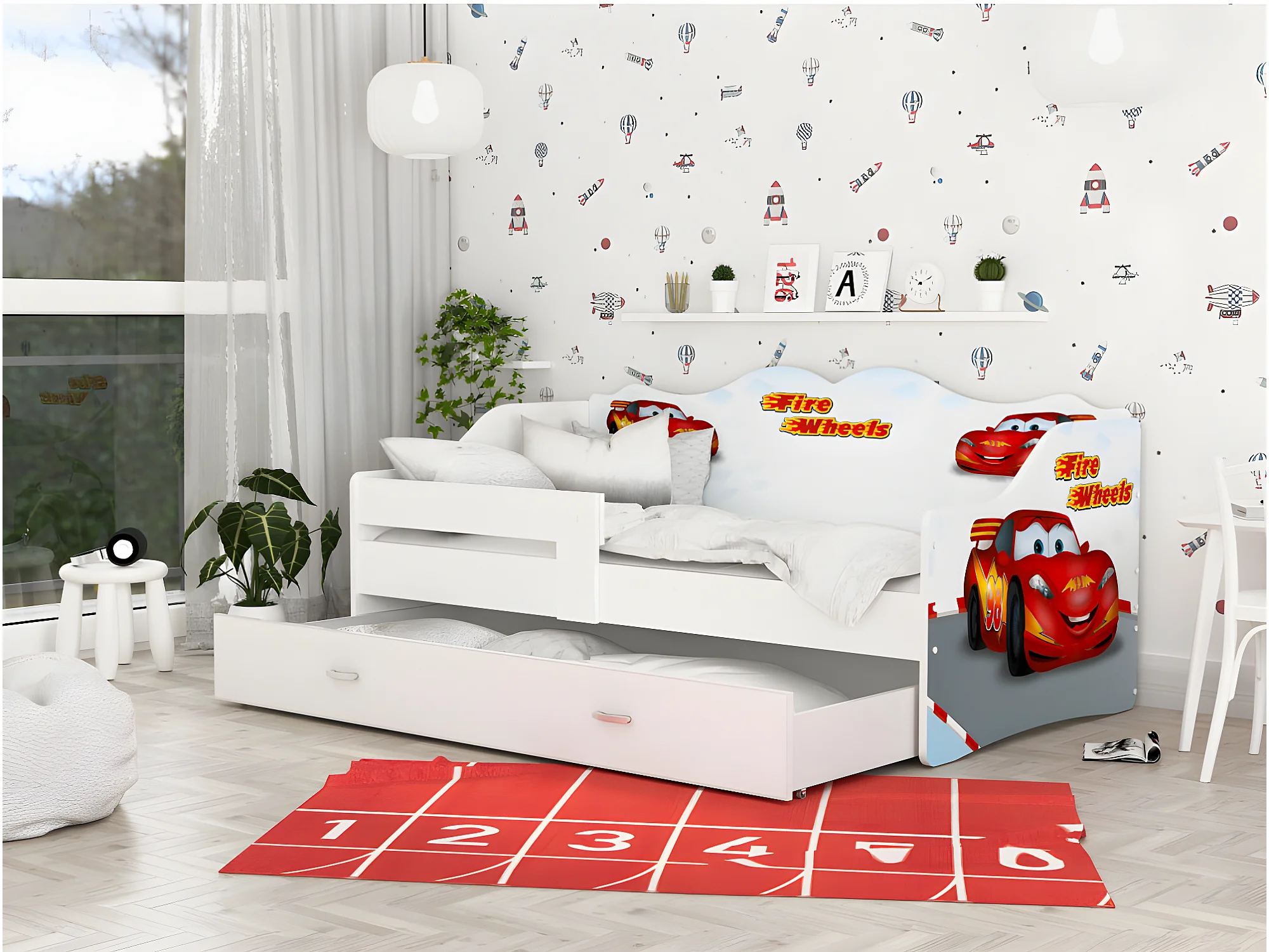 Lit Banquette Neli Cars 80x160 Blanc Livré avec sommiers, tiroir et matelas en mousse de 7cm