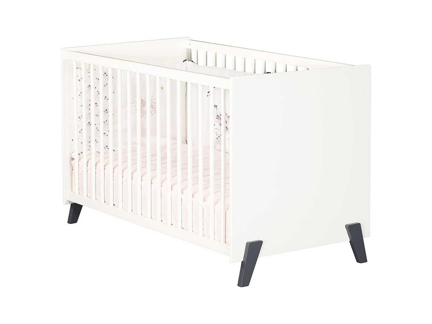 Lit bébé 120 x 60 sur pieds en bois blanc JOY - BabyPrice