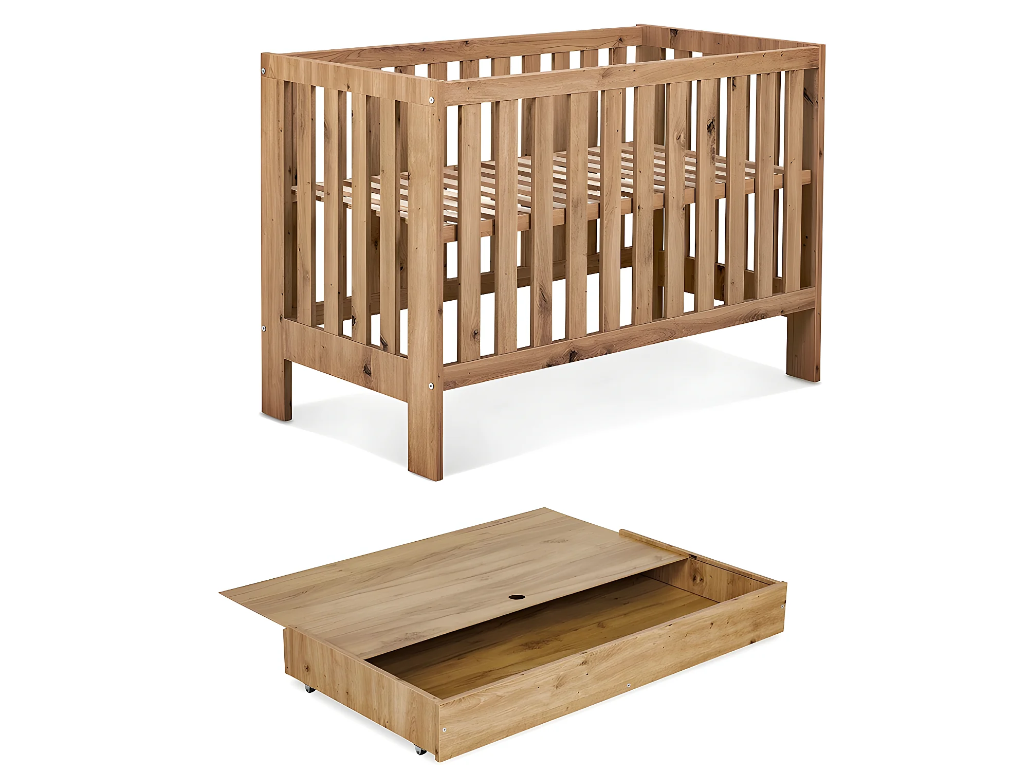 Lit bébé 120x60cm avec tiroir couleur Chêne AMELIE Lit à barreaux amovible