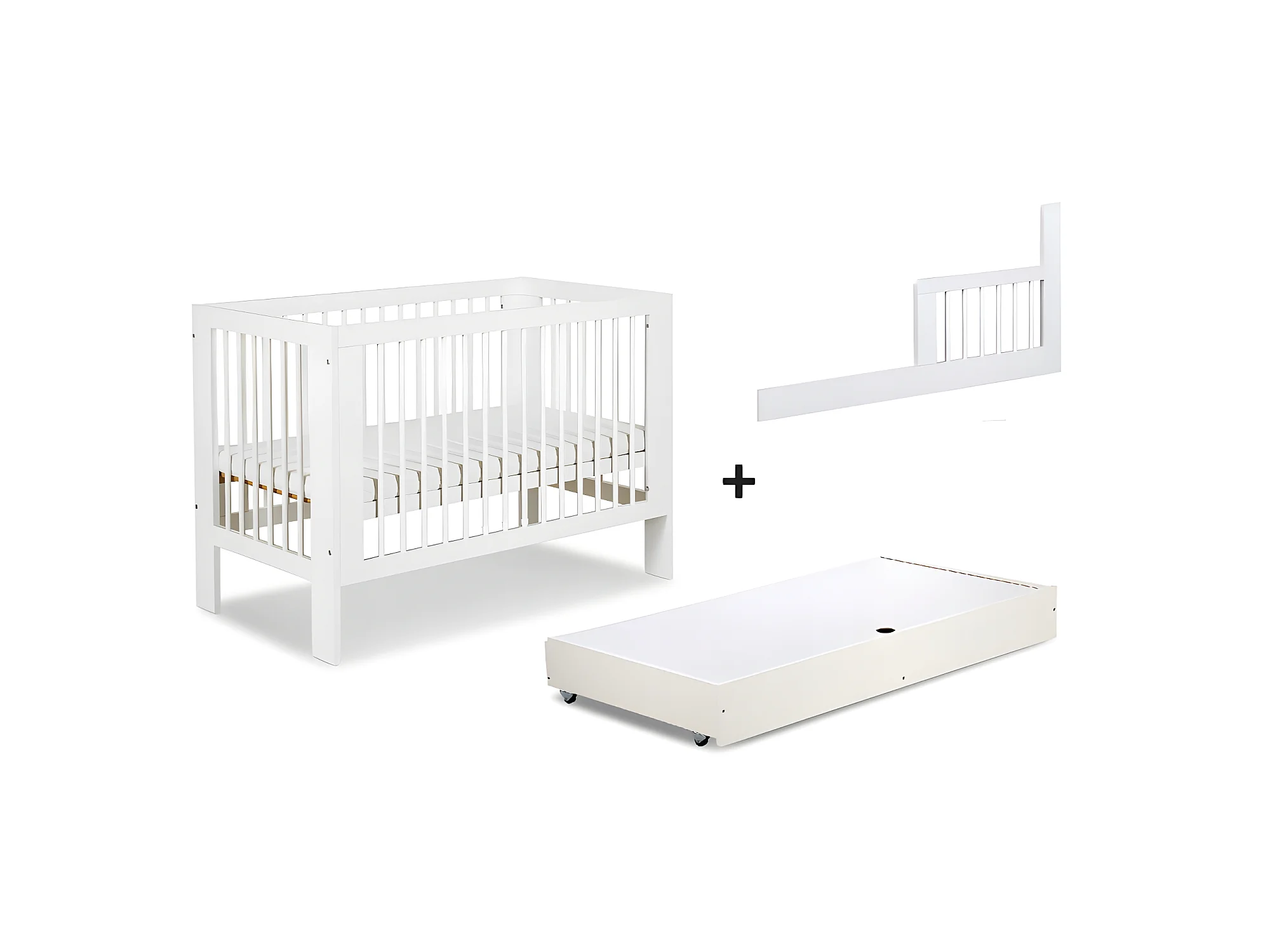 Lit bébé 120x60cm avec tiroir couleur et barrière de sécurité Blanc OLIVE Lit barreaux amovible