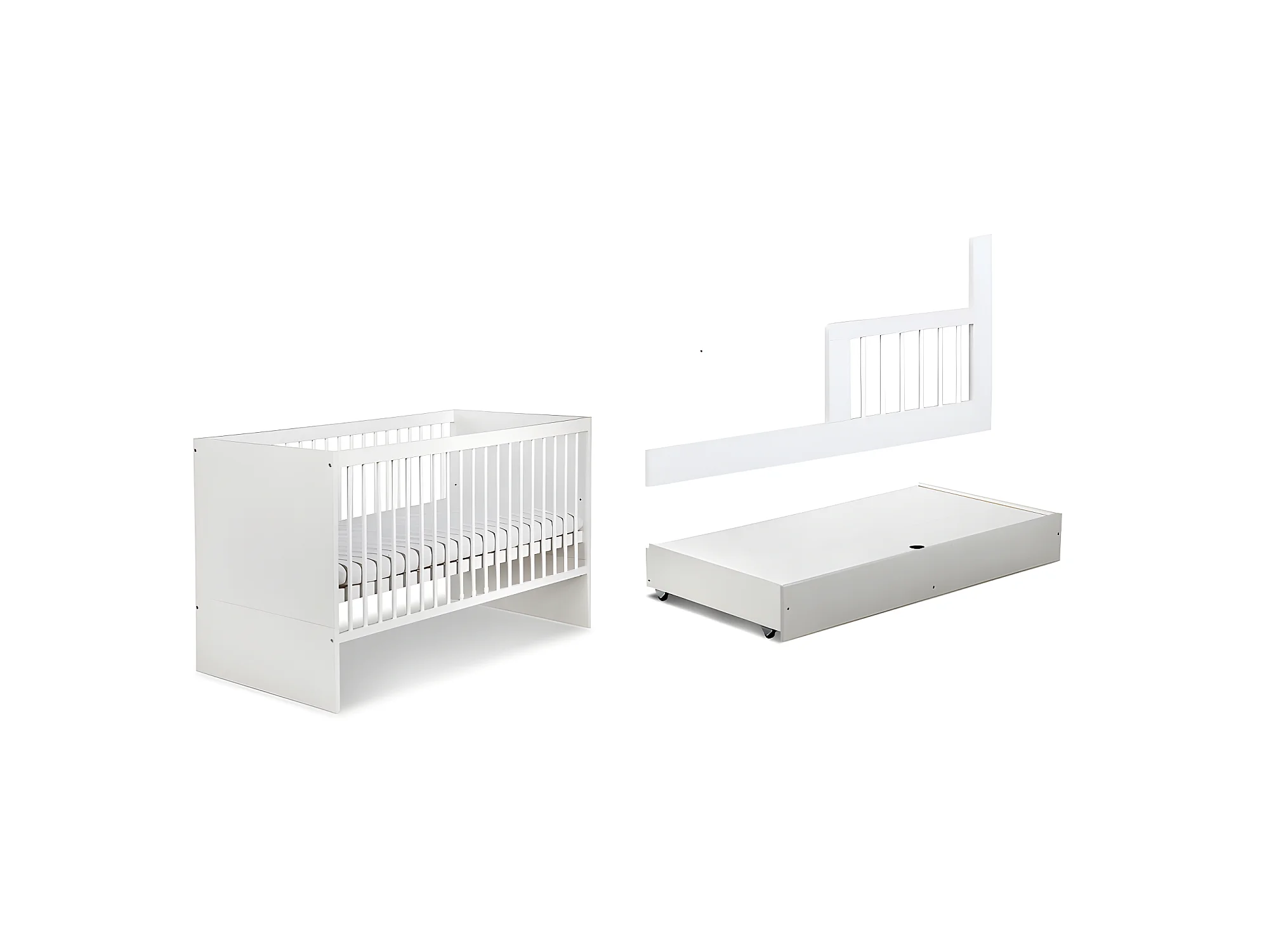 Lit bébé 120x60cm Blanc avec tiroir DALYA barreaux amovible et barrière de sécurité inclus
