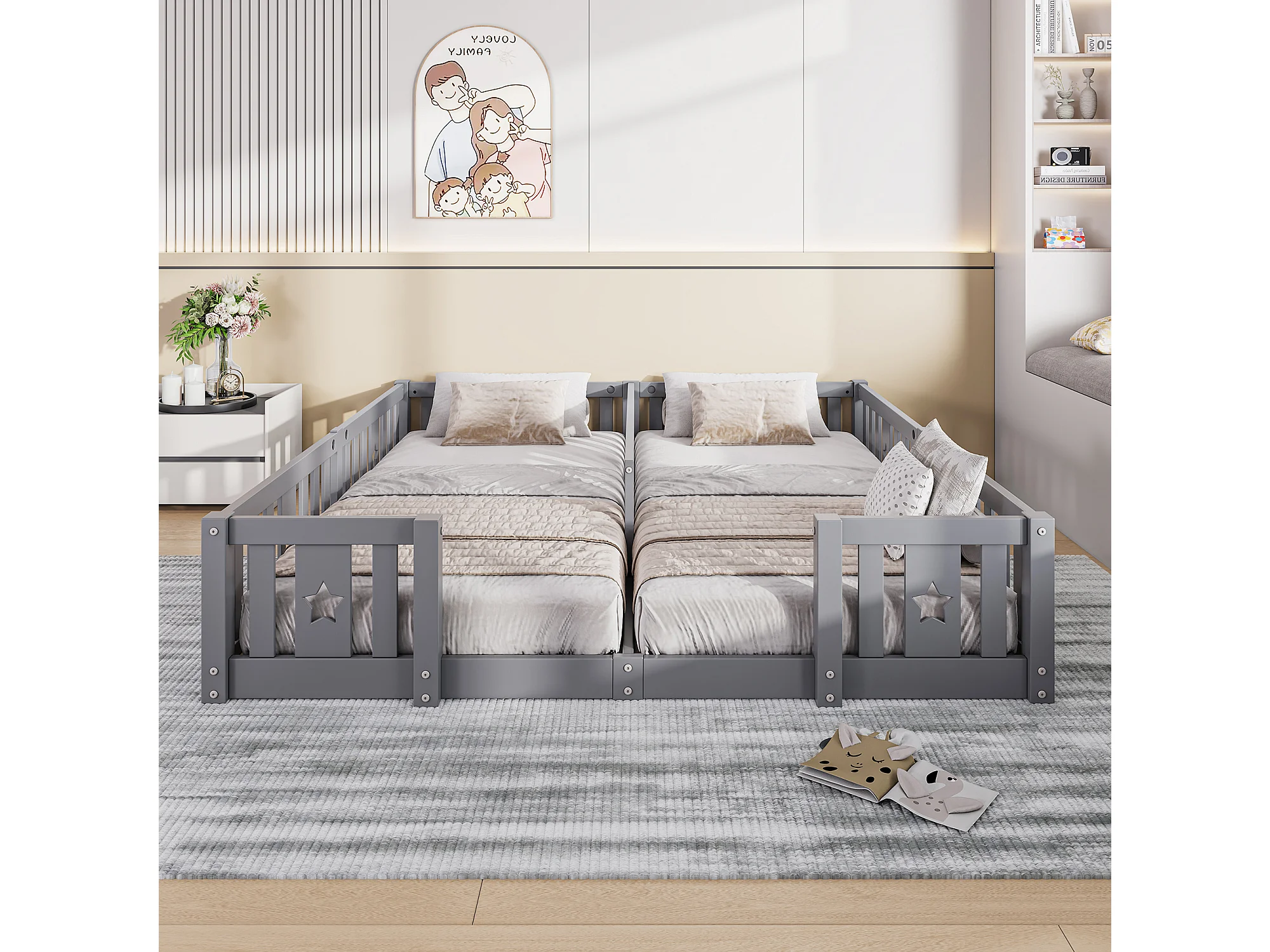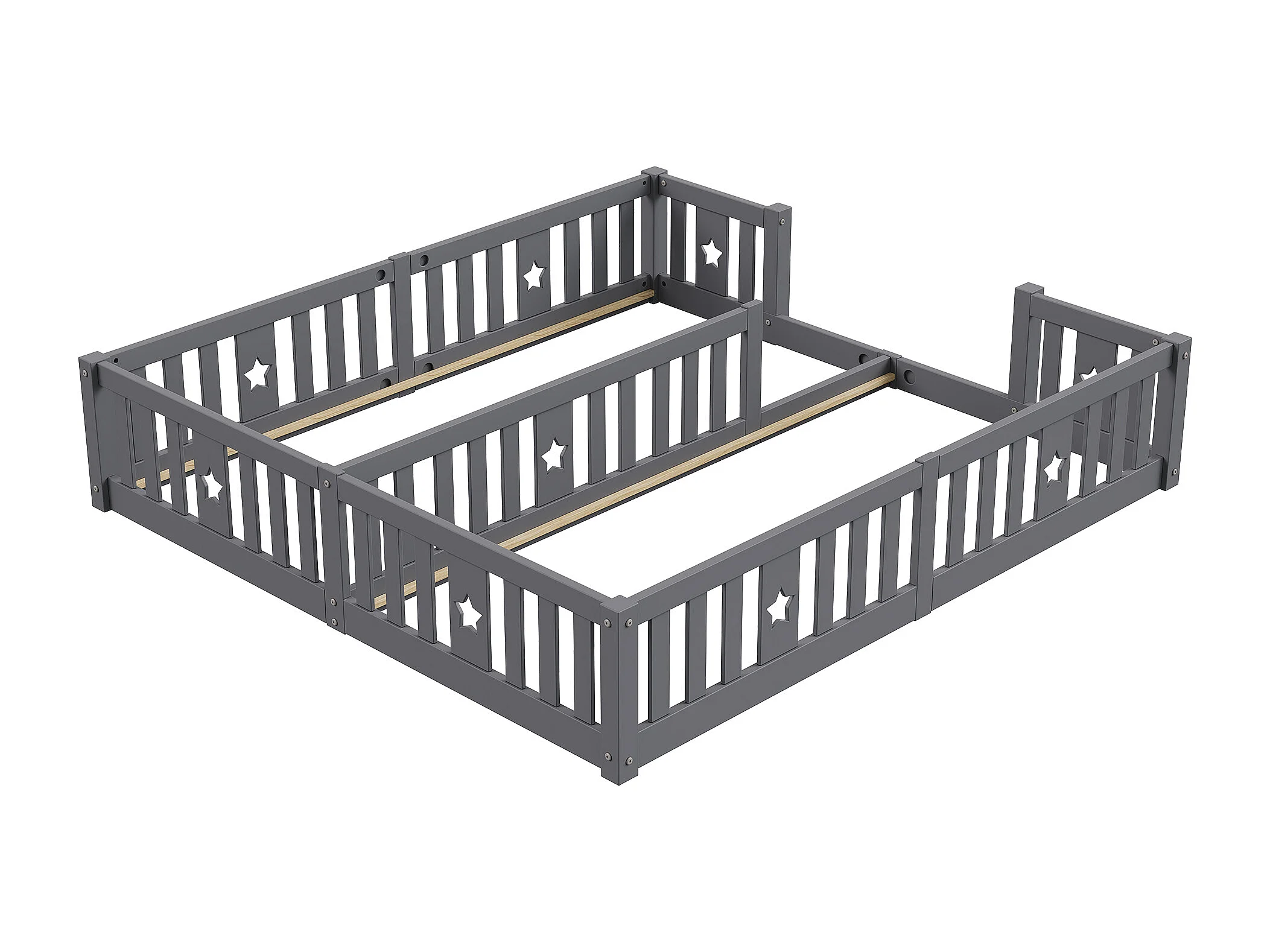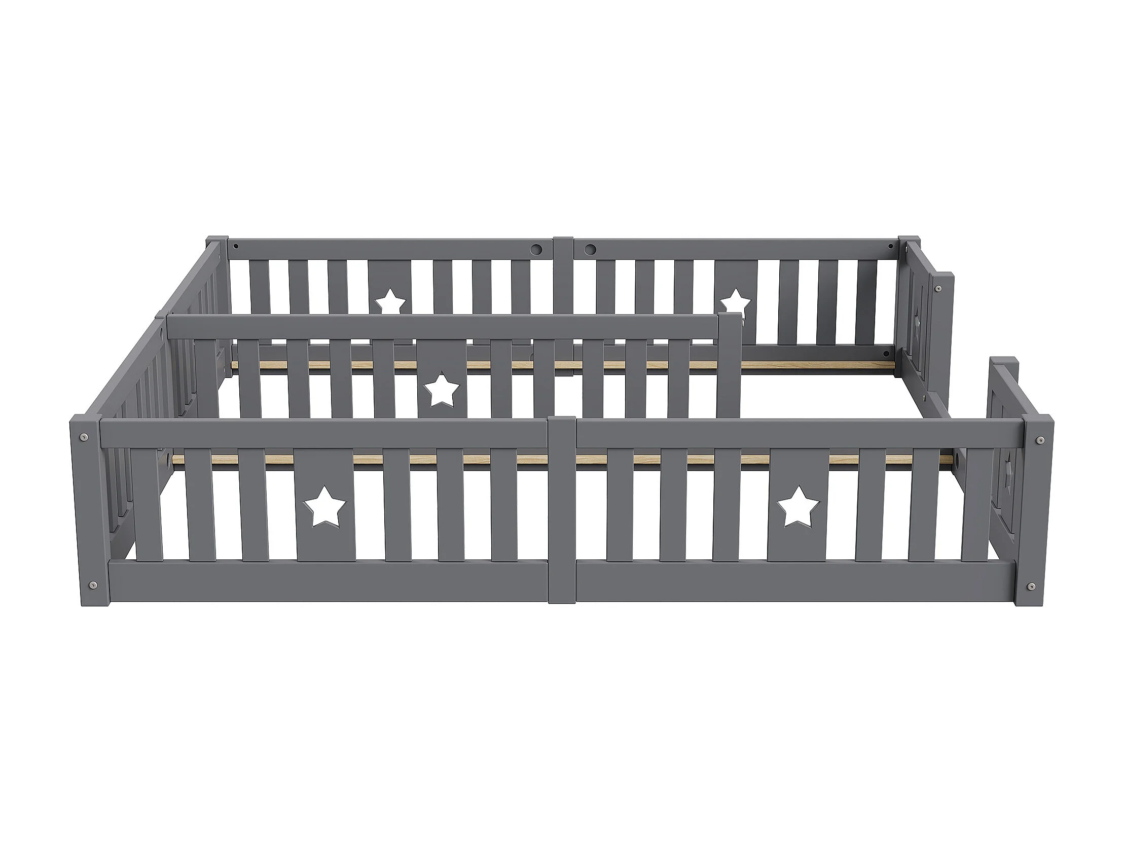 Lit bébé 180 x 200 cm avec protection anti-chute, pour 2 enfants, en bois massif, Gris, sans sommier à lattes