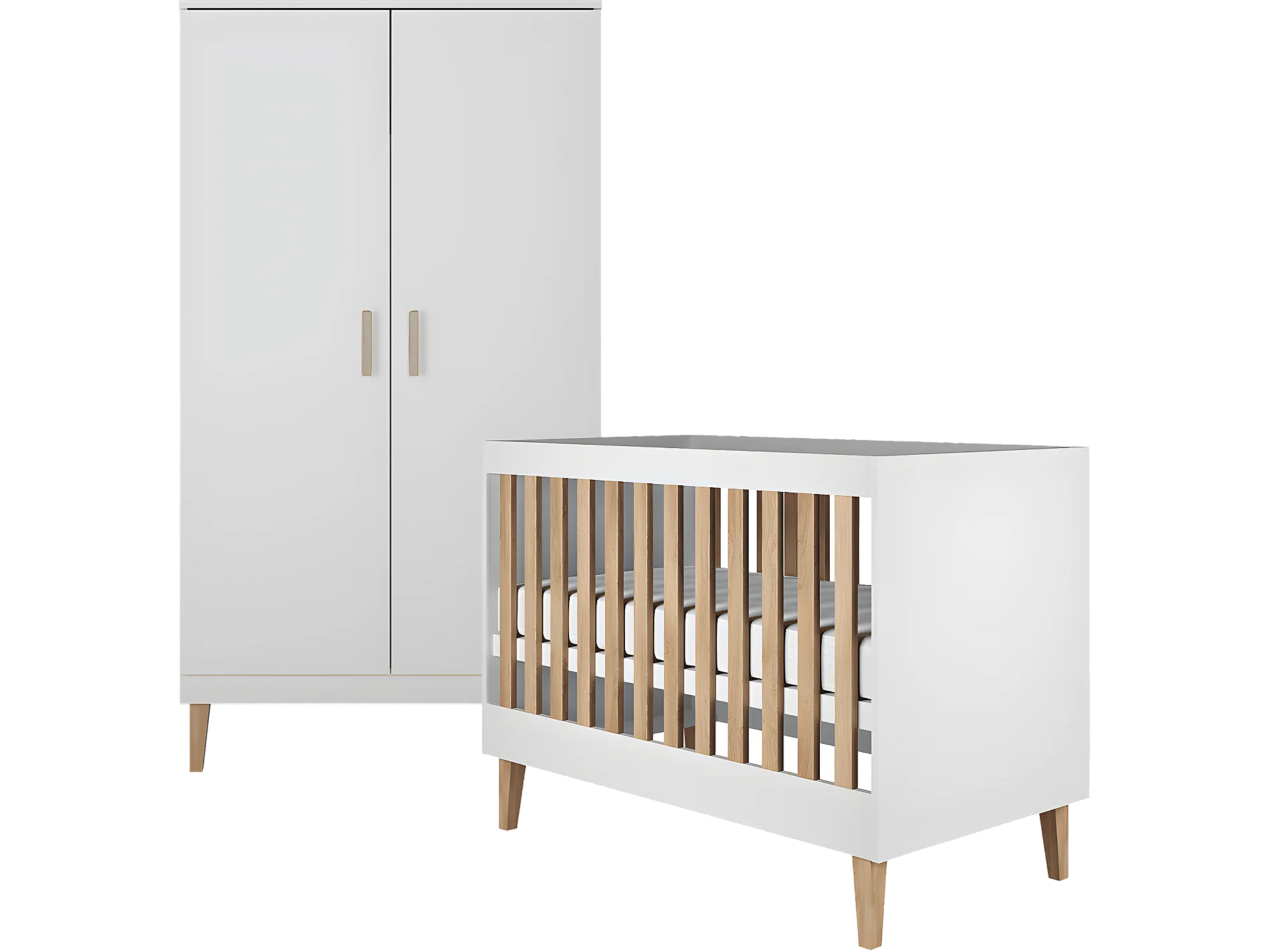 Lit bébé 60x120 et armoire Kubi - Blanc
