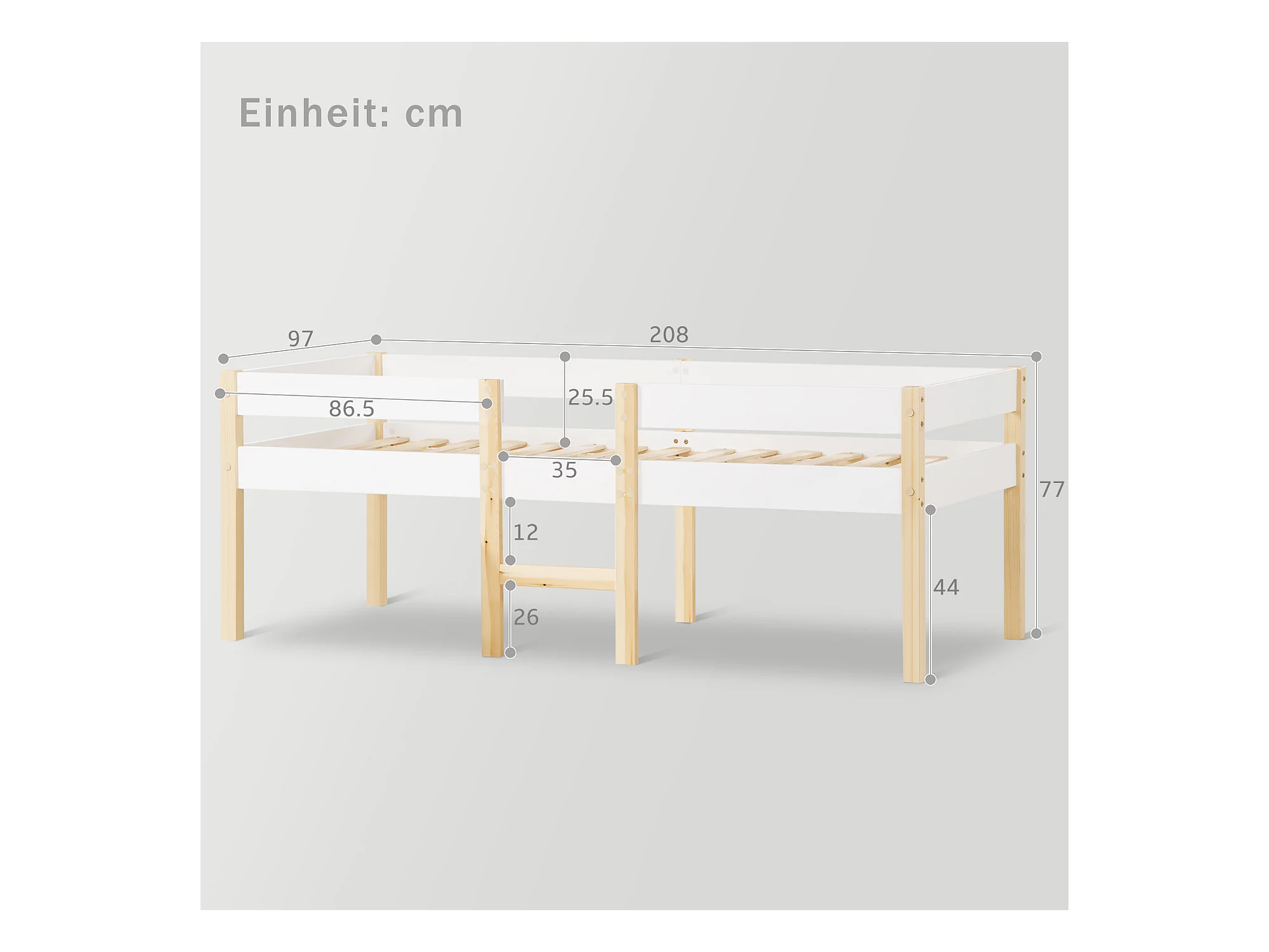 Bosco - Lit enfant et matelas en bois blanc 195x98x148cm