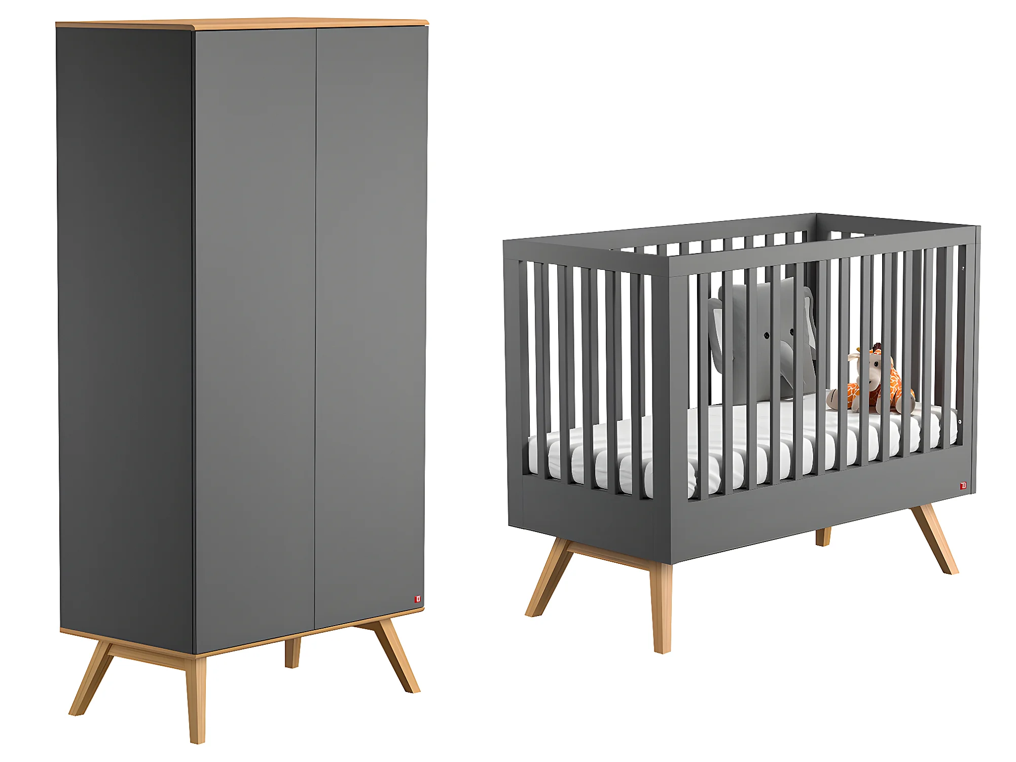 Lit bébé et Armoire Nature Gris