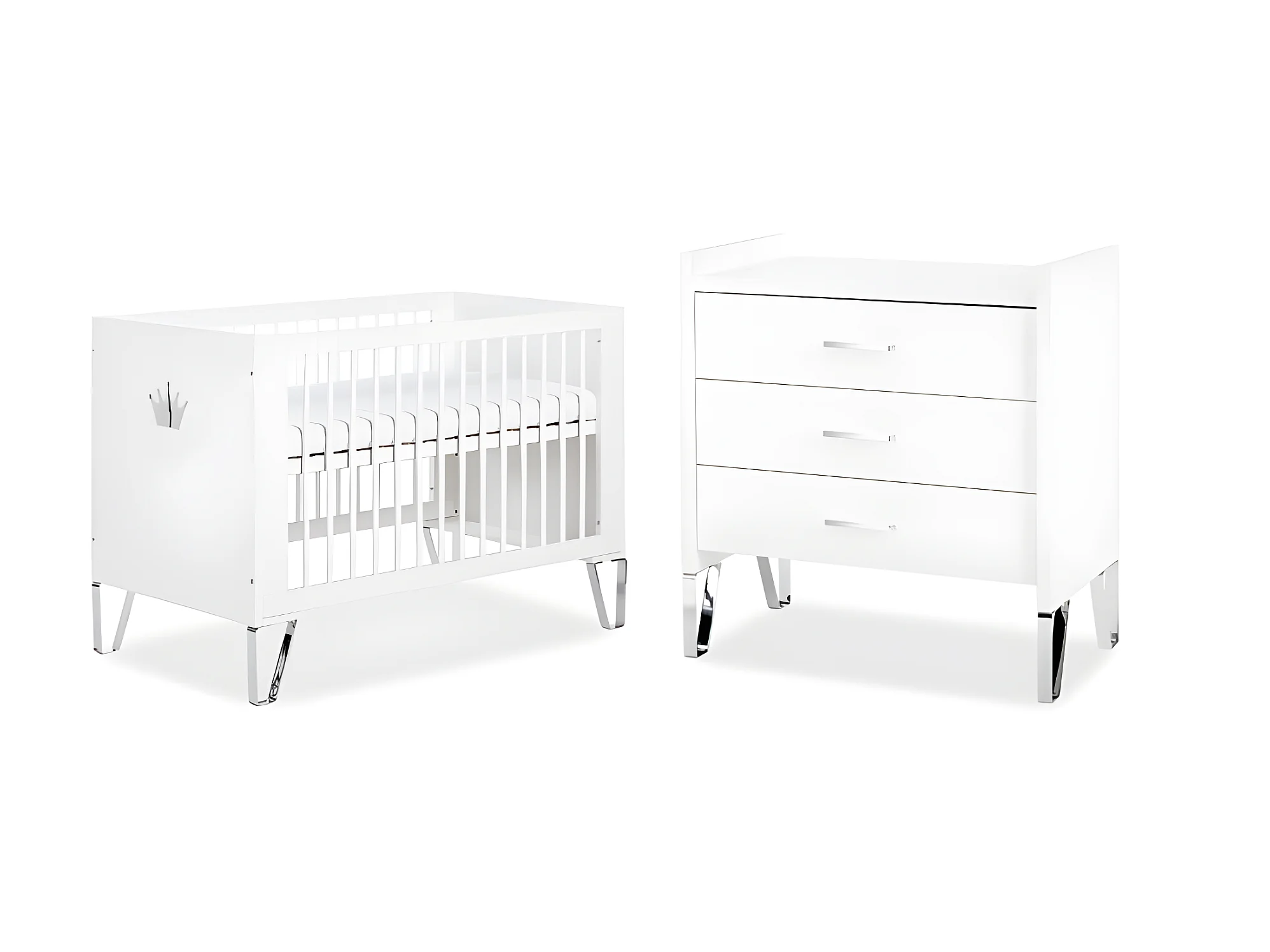 Lit bébé et Commode à langer LittleSky by Klups Blanka Blanc
