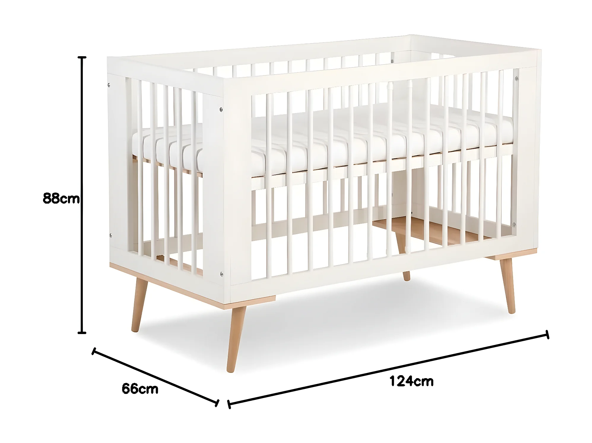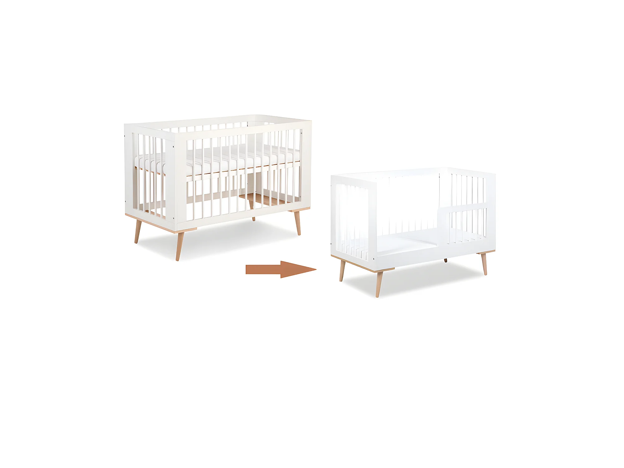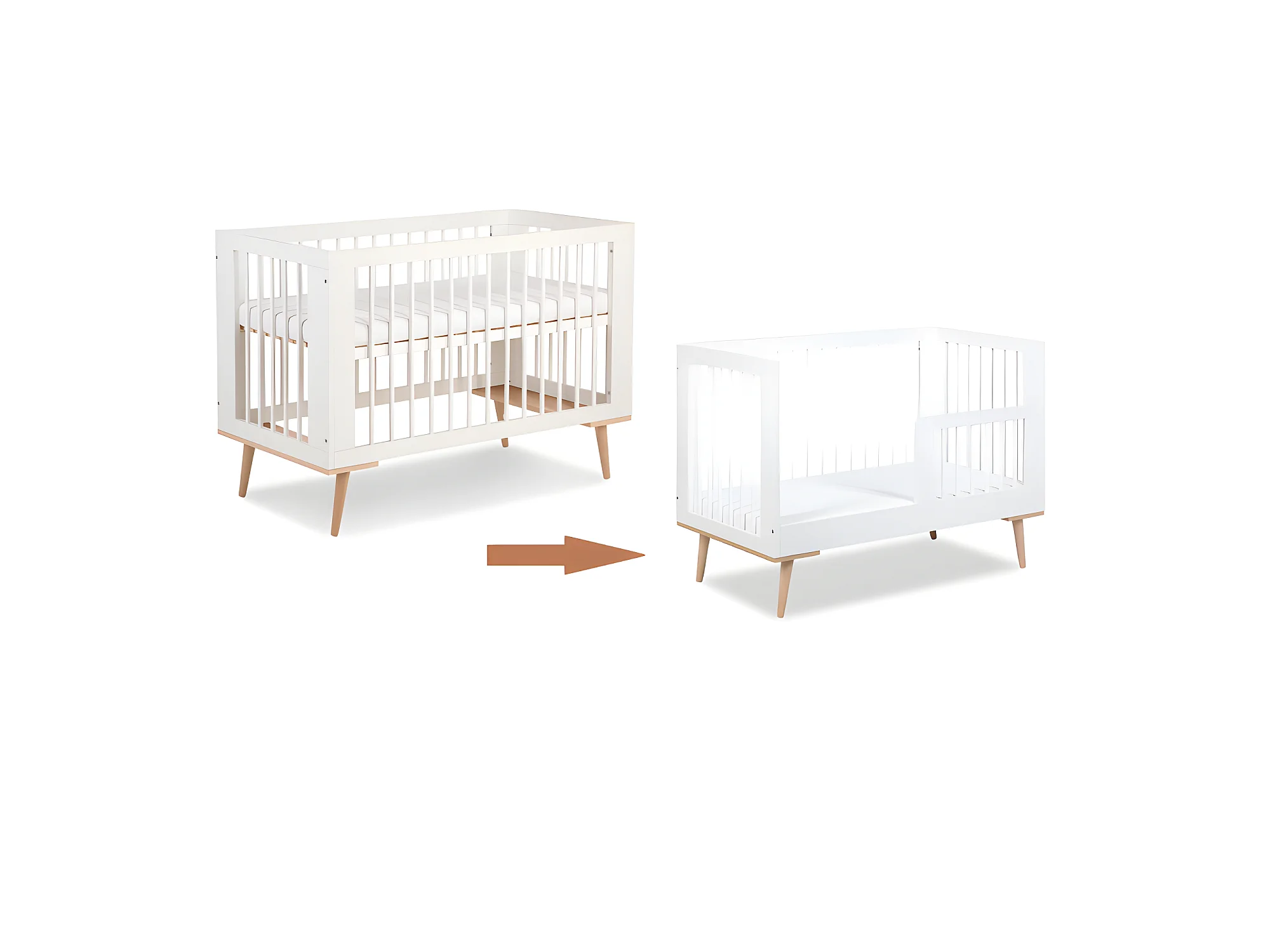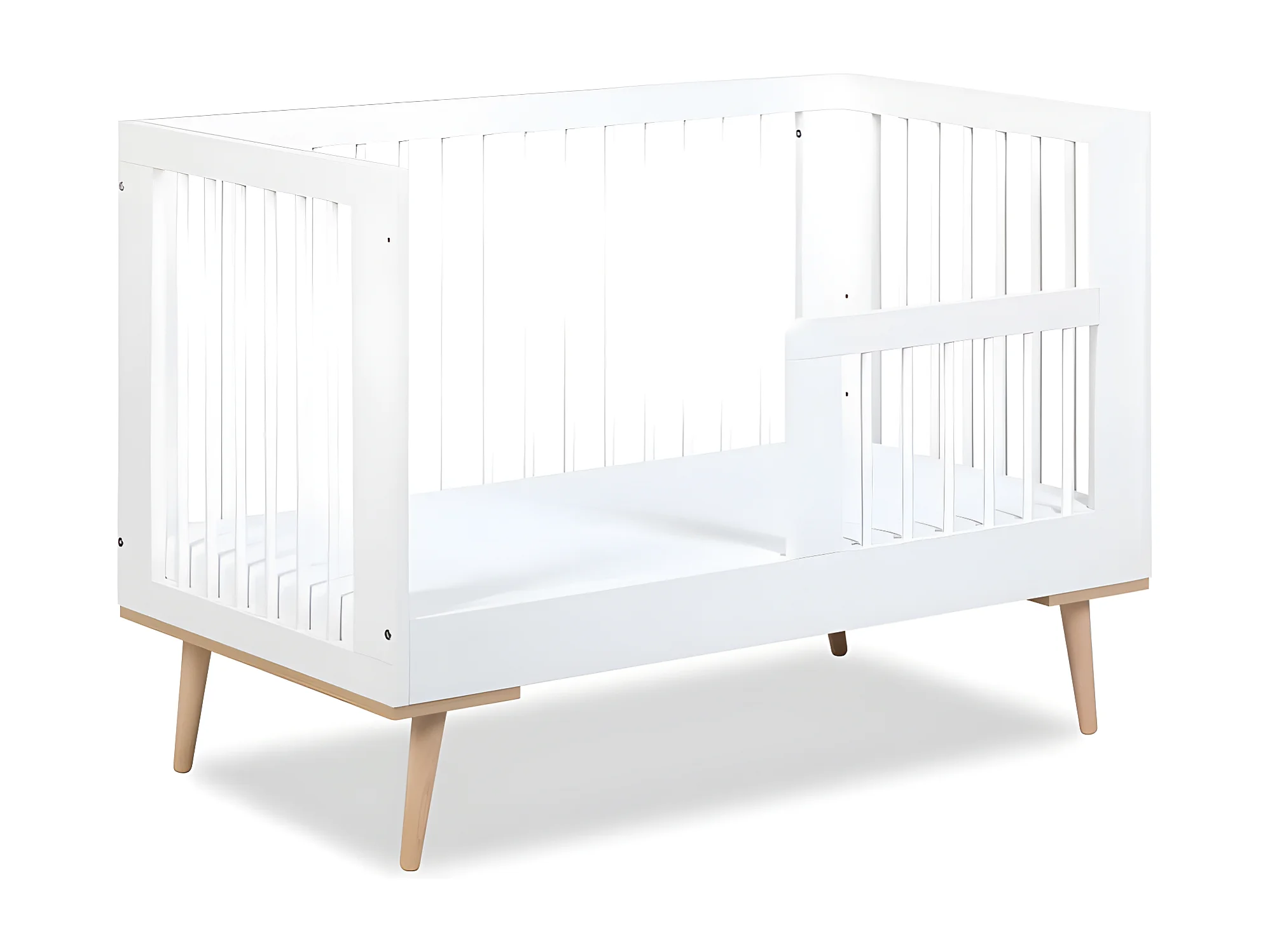 Lit bébé évolutif 120x60cm blanc SOPHIE barreaux amovible avec barrière inclus