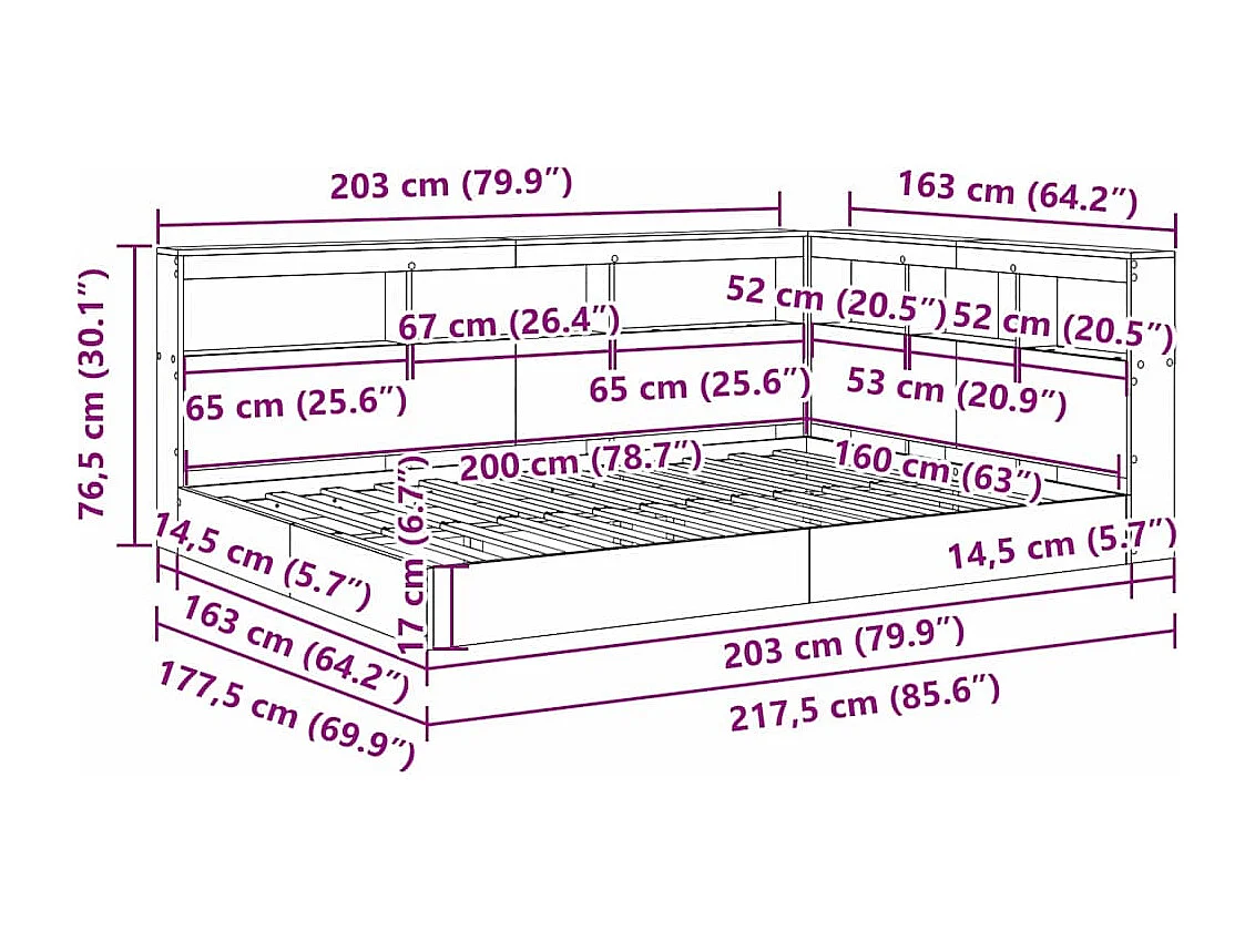 Lit Bibliothèque Chêne sonoma 160 x 200 cm Bois d'ingénierie