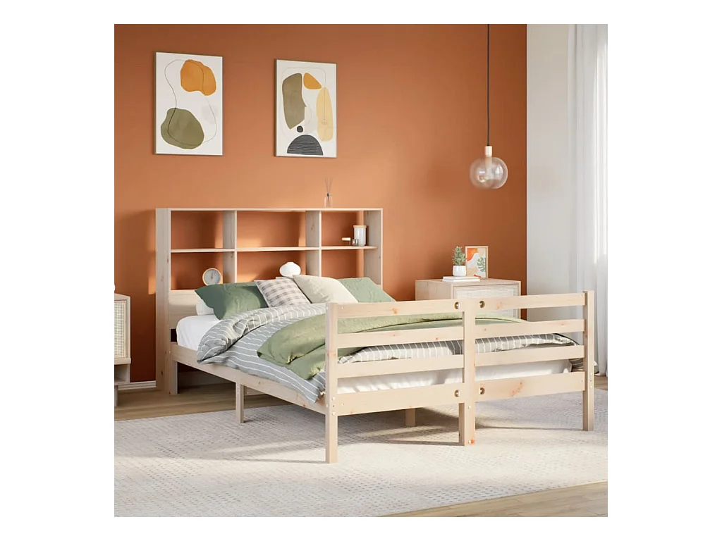Lit bibliothèque sans matelas 135x190 cm bois de pin massif