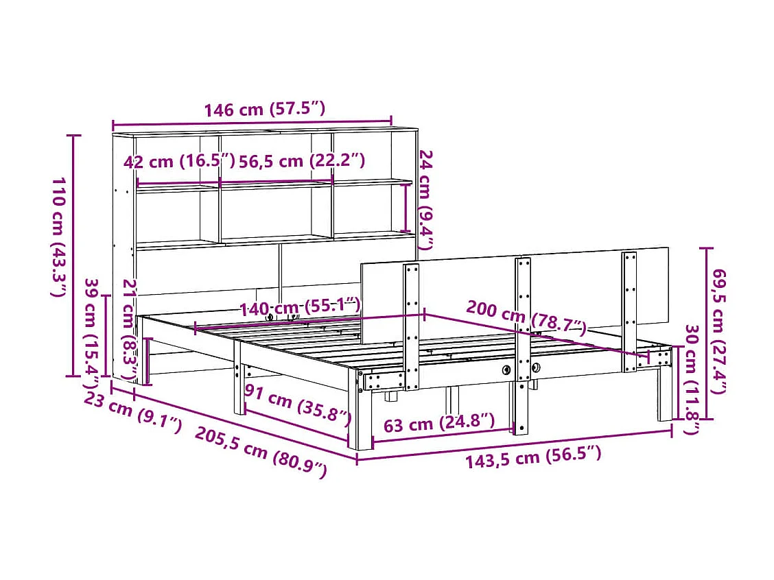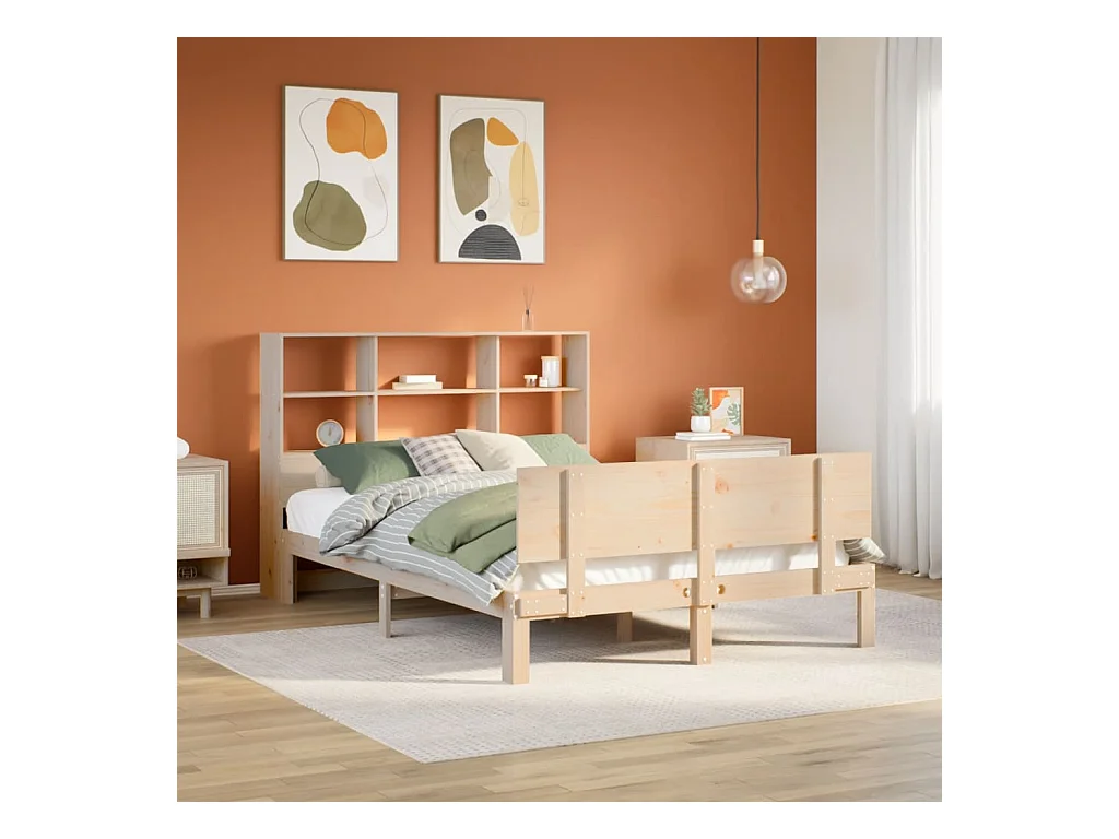 Lit bibliothèque sans matelas 140x200 cm bois massif de pin