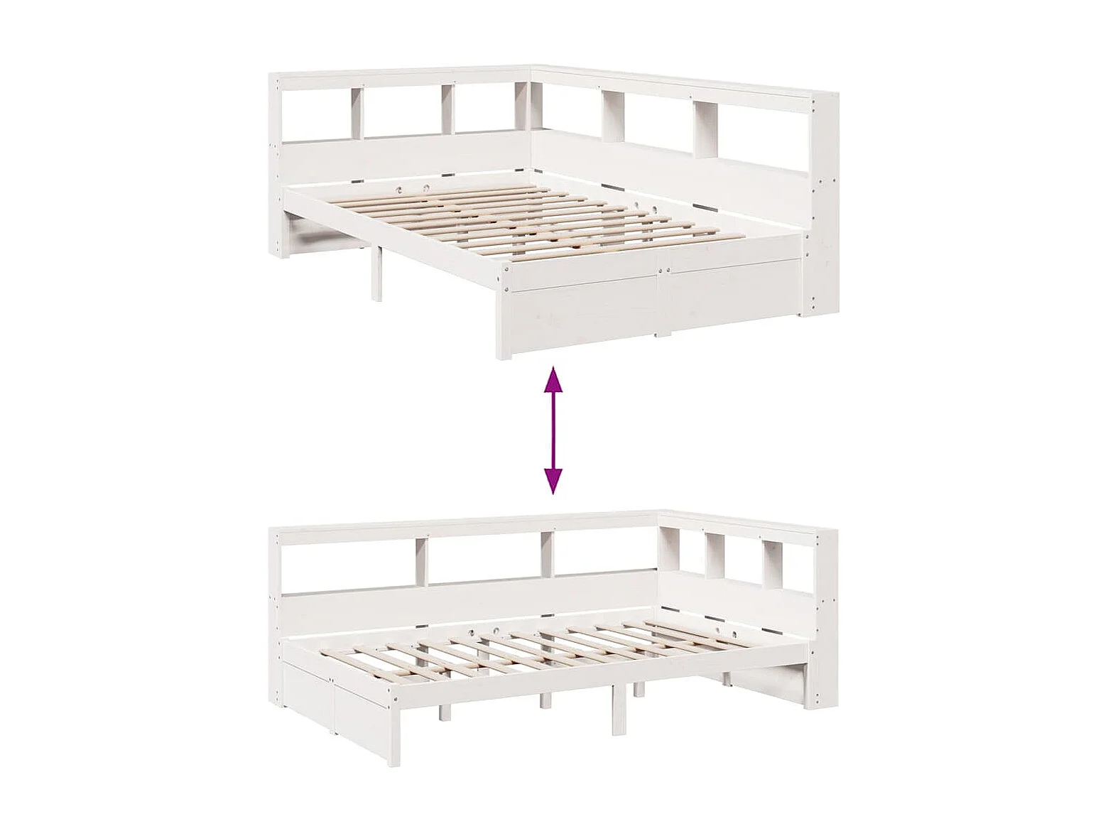 Lit bibliothèque sans matelas blanc 120x200 cm bois pin massif
