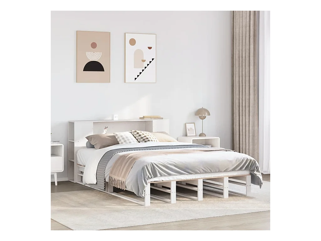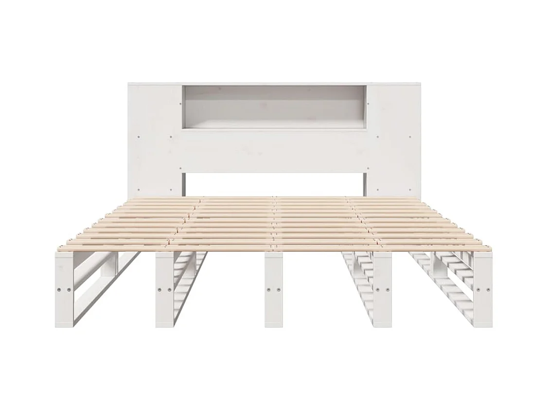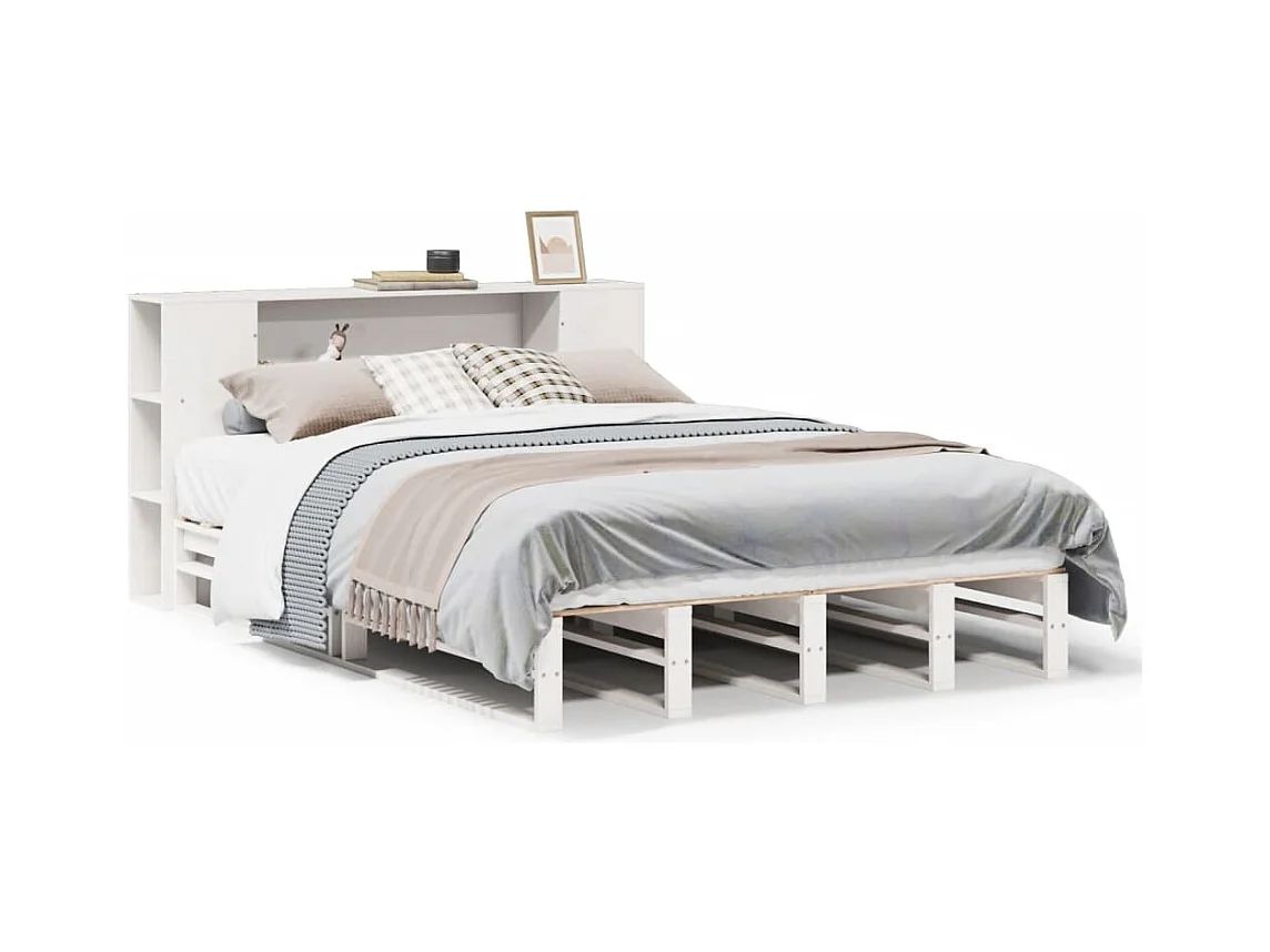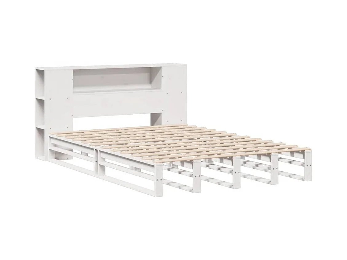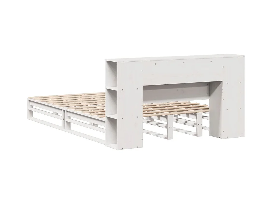 Bed met boekenkast zonder matras massief hout wit 135x190 cm
