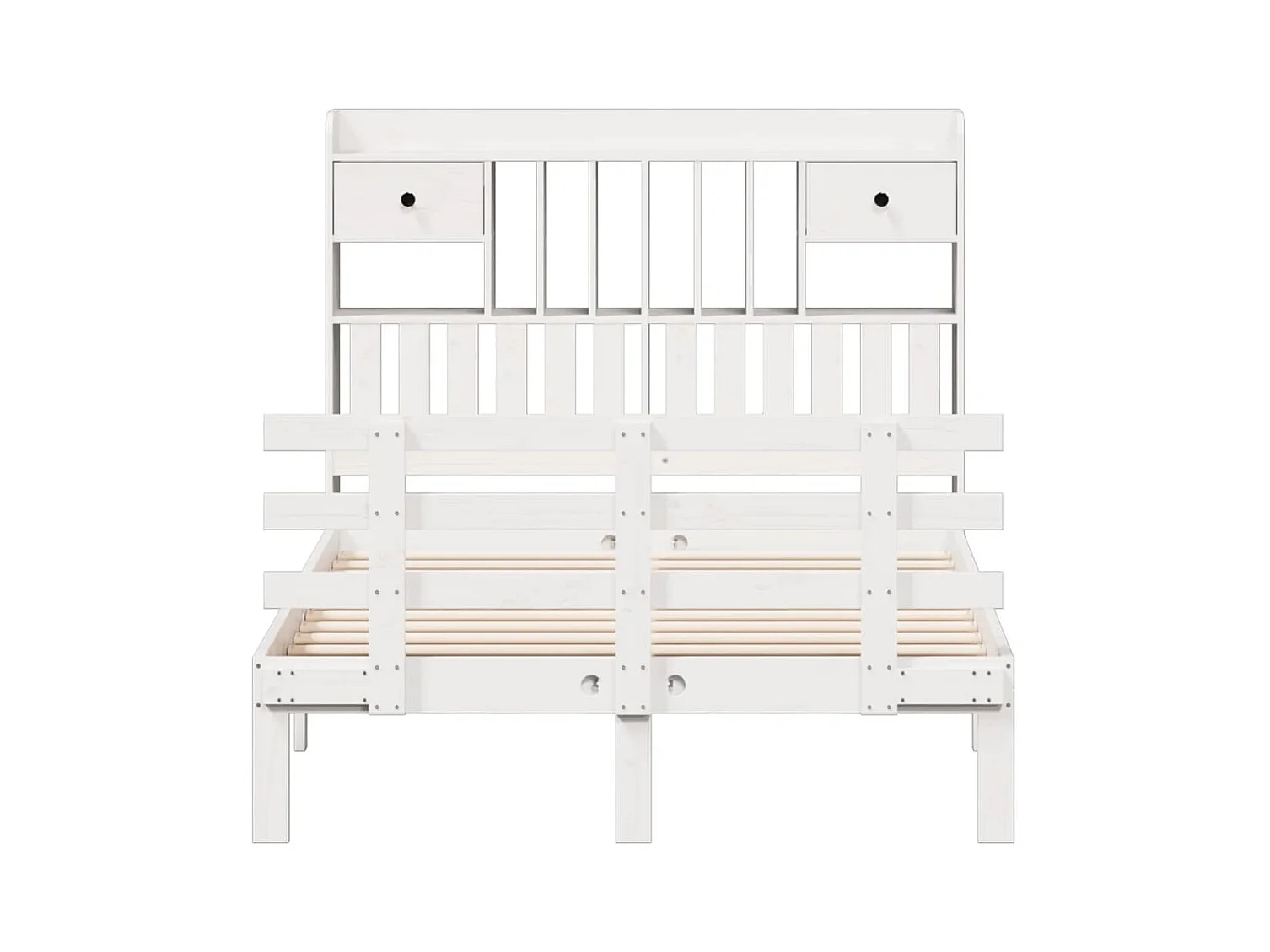 Lit bibliothèque sans matelas blanc 135x190 cm bois pin massif