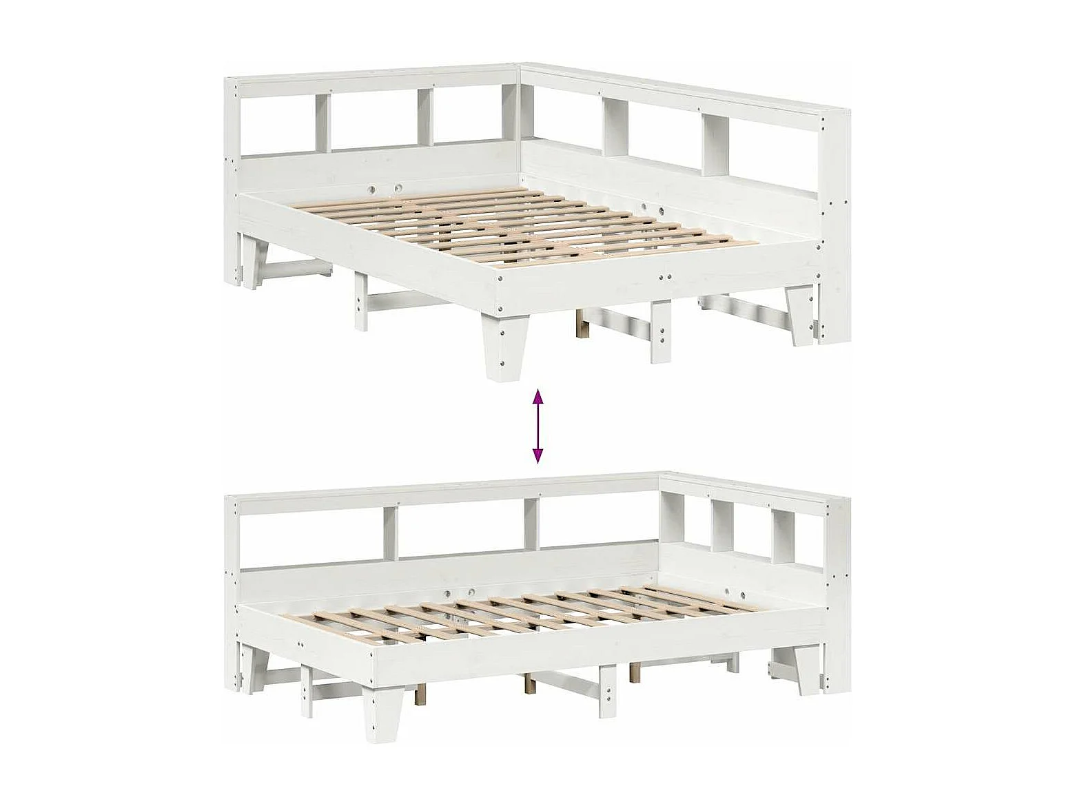 Lit bibliothèque sans matelas blanc 135x190 cm bois pin massif