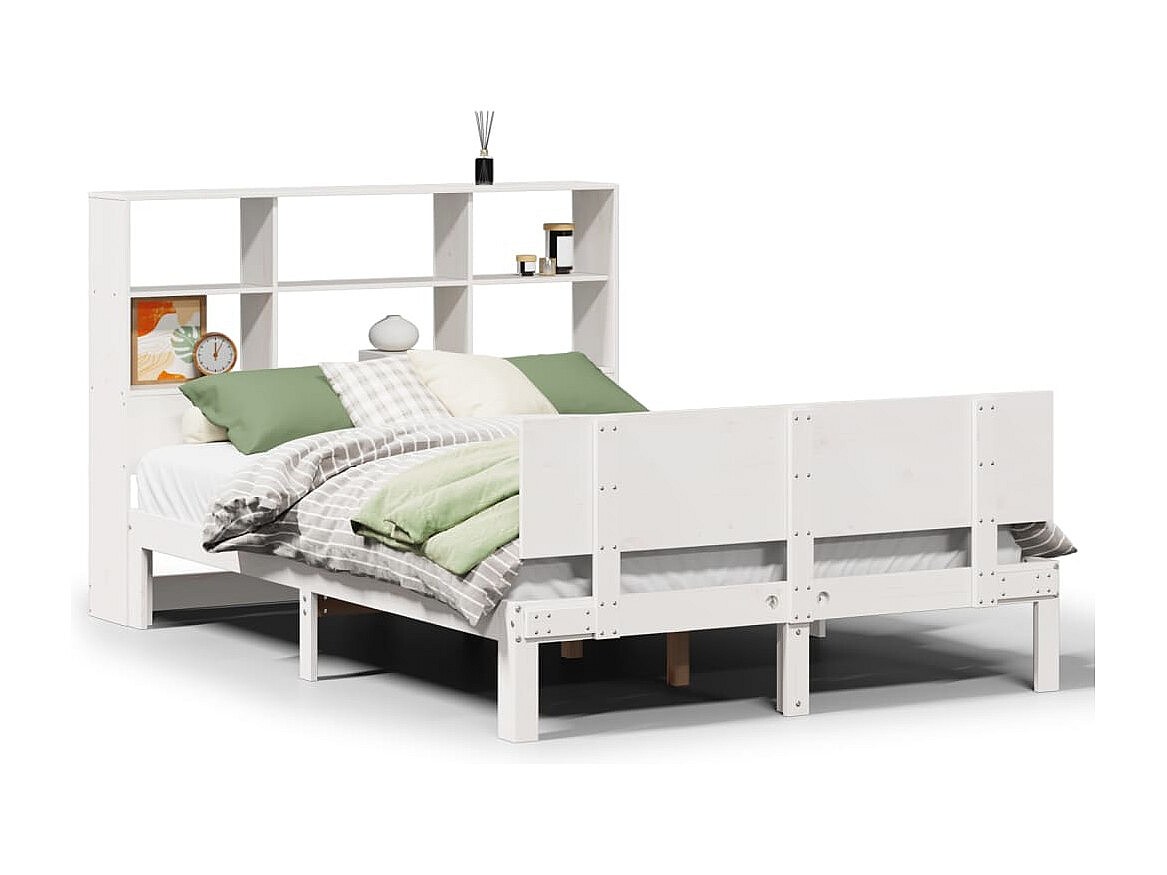 Lit bibliothèque sans matelas blanc 140x190 cm bois pin massif