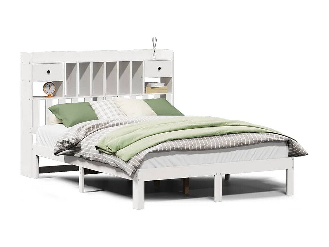 Lit bibliothèque sans matelas blanc 140x200 cm bois pin massif