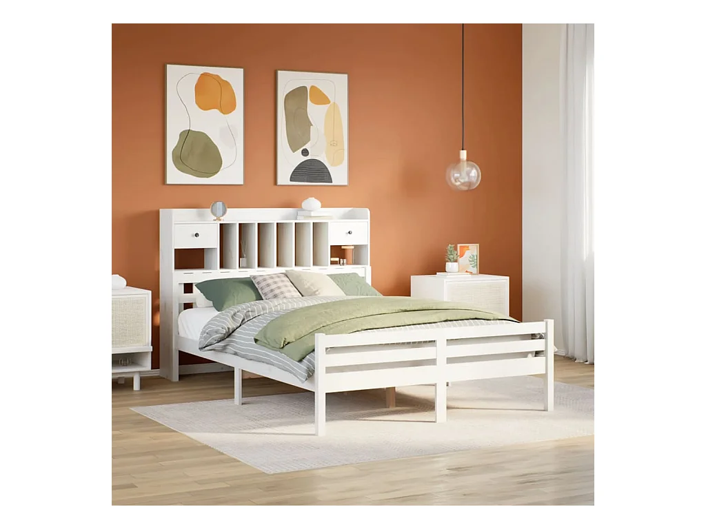Lit bibliothèque sans matelas blanc 150x200 cm bois pin massif