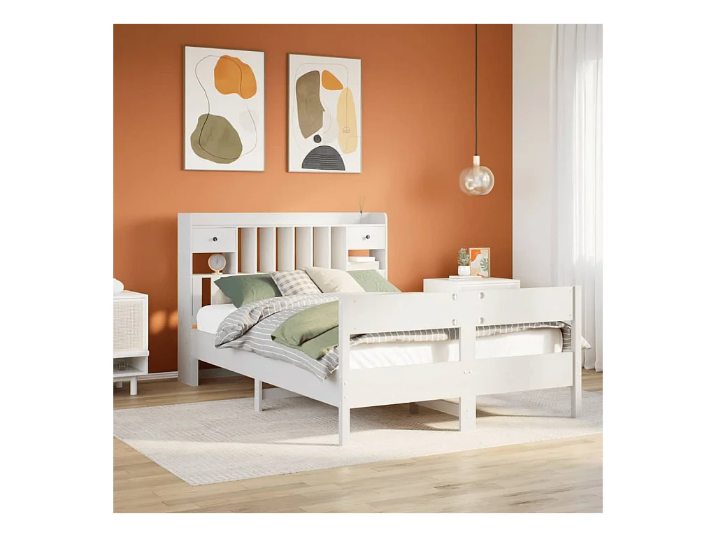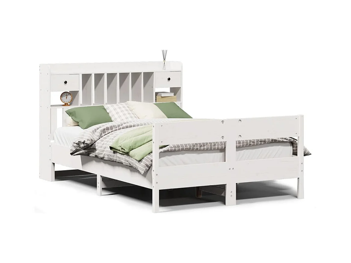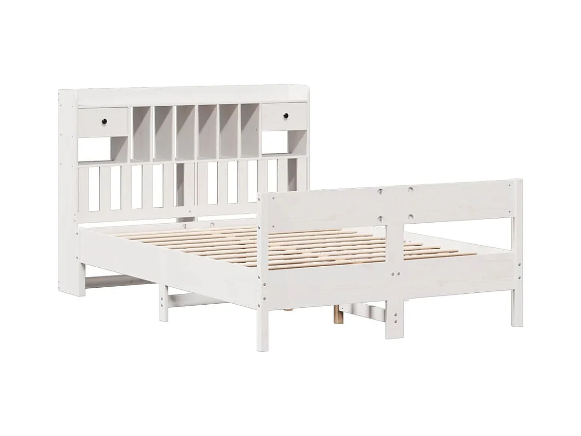 Bed met boekenkast zonder matras grenenhout wit 150x200 cm