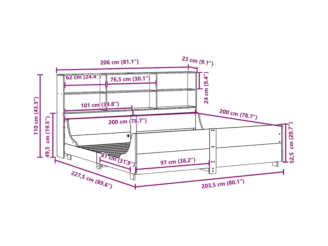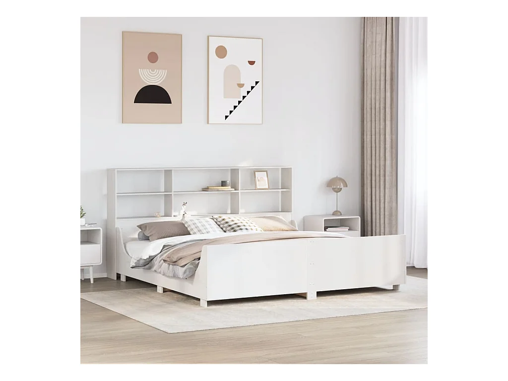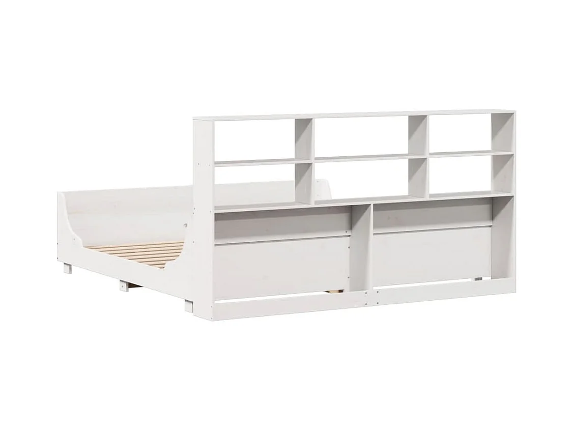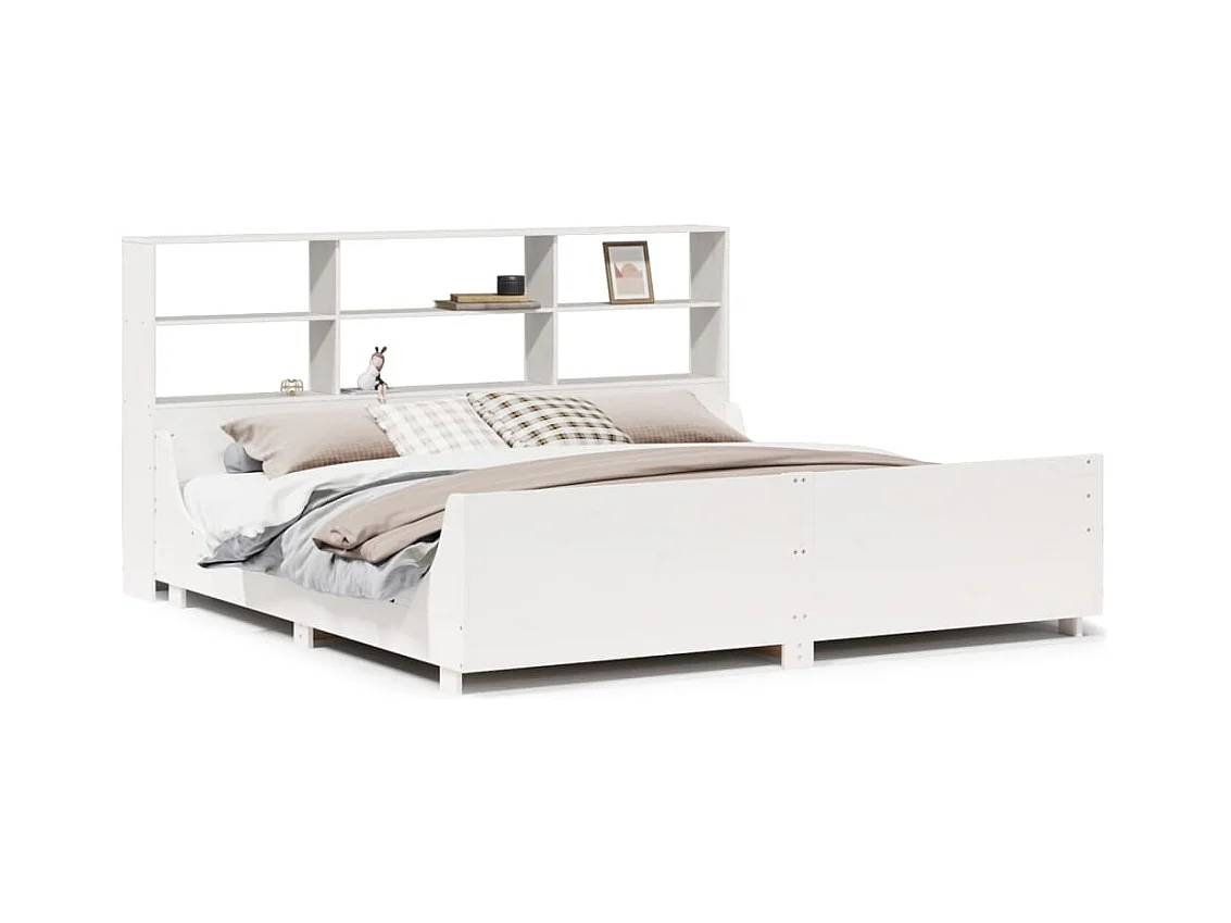 Lit bibliothèque sans matelas blanc 200x200 cm bois massif