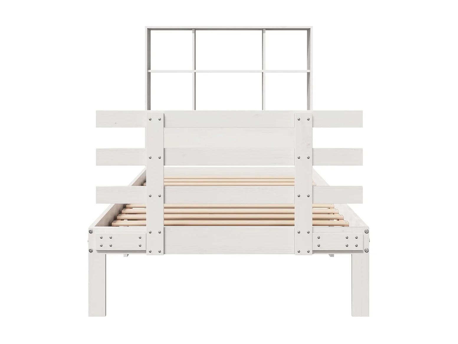 Lit bibliothèque sans matelas blanc 90x190cm bois de pin massif