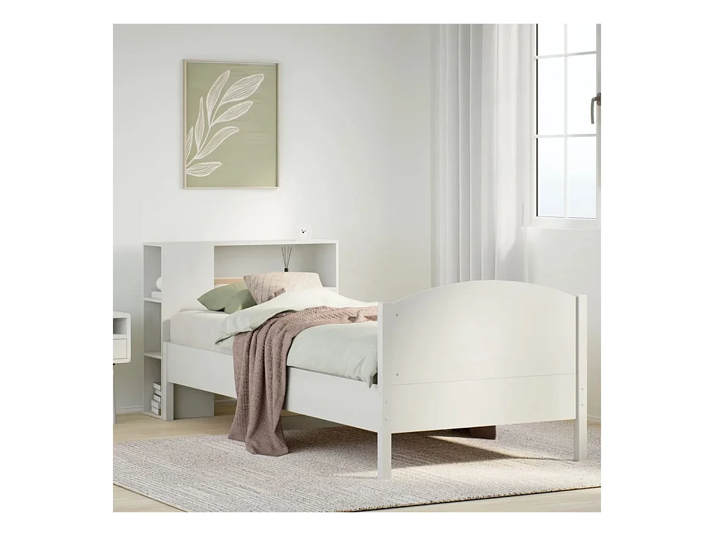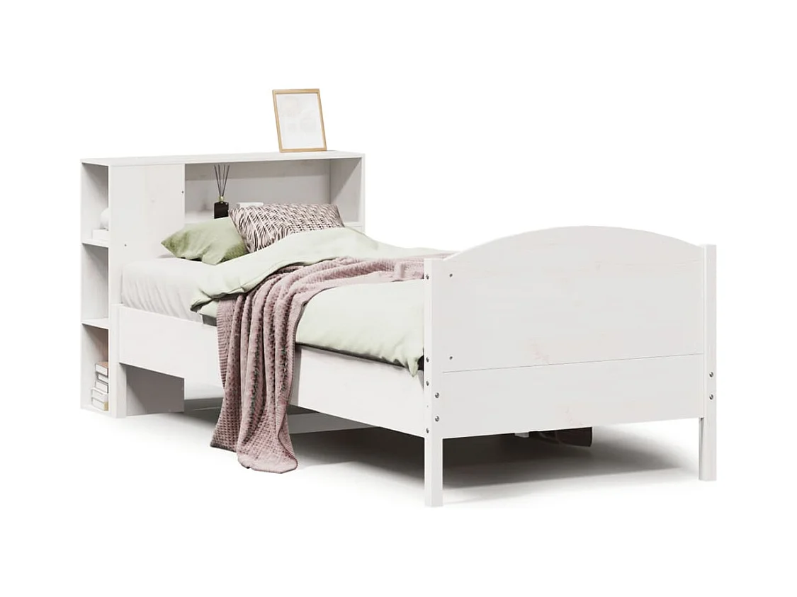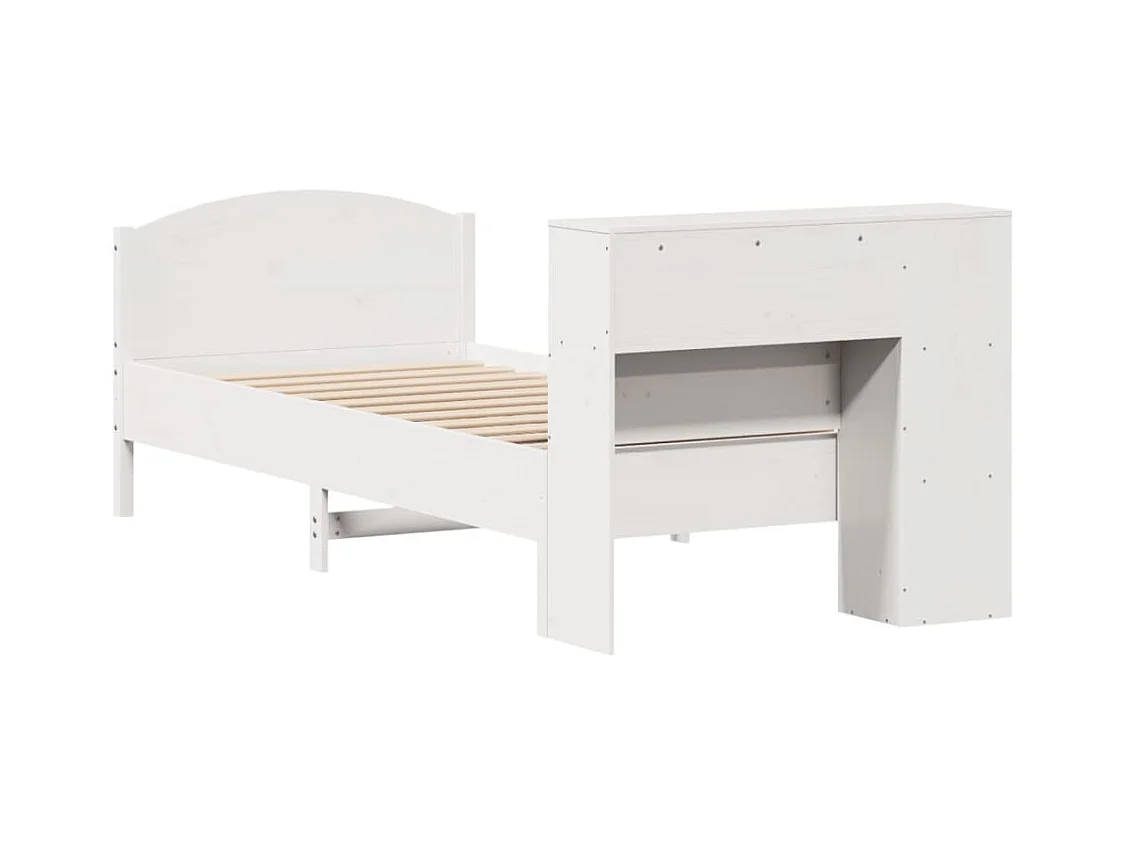 Lit bibliothèque sans matelas blanc 90x200cm bois de pin massif