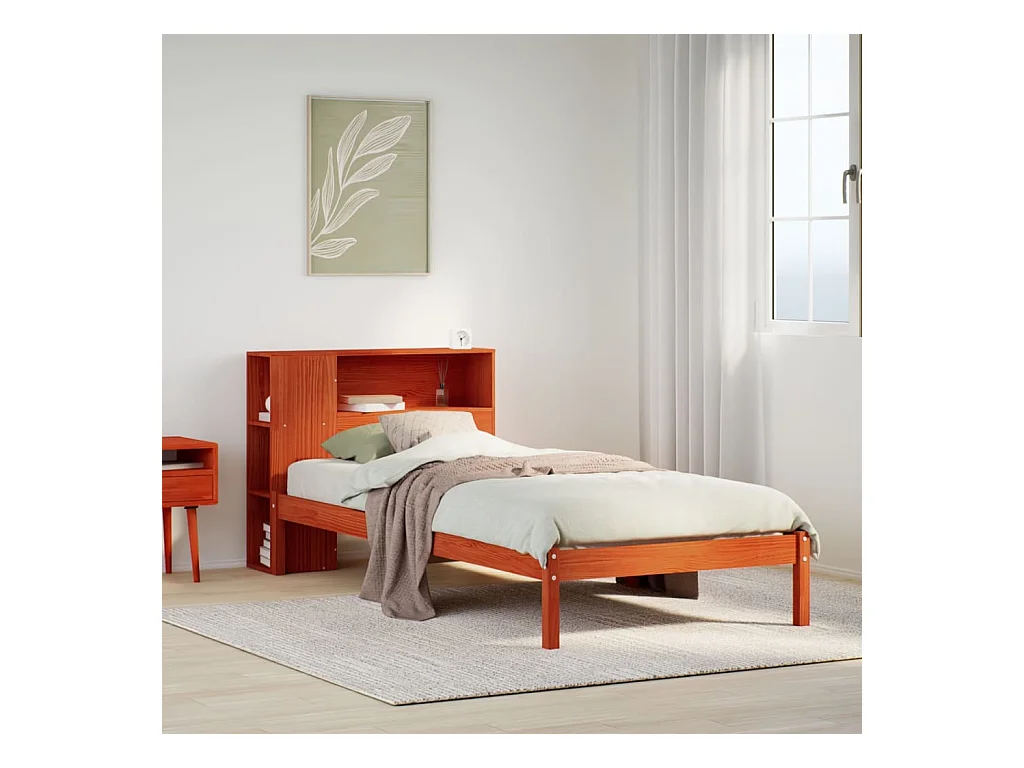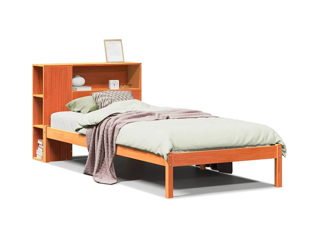 Bed met boekenkastukkenzonder matras grenenhout wasbruin 100x200 cm