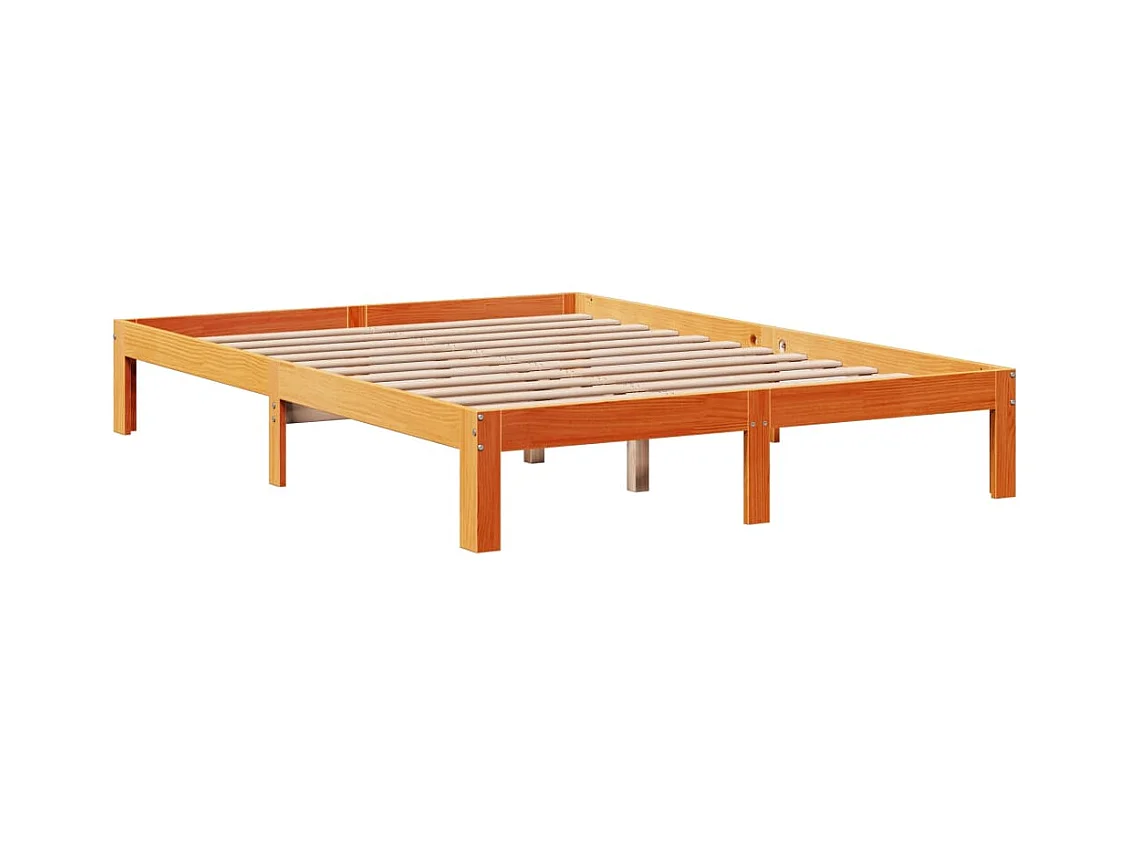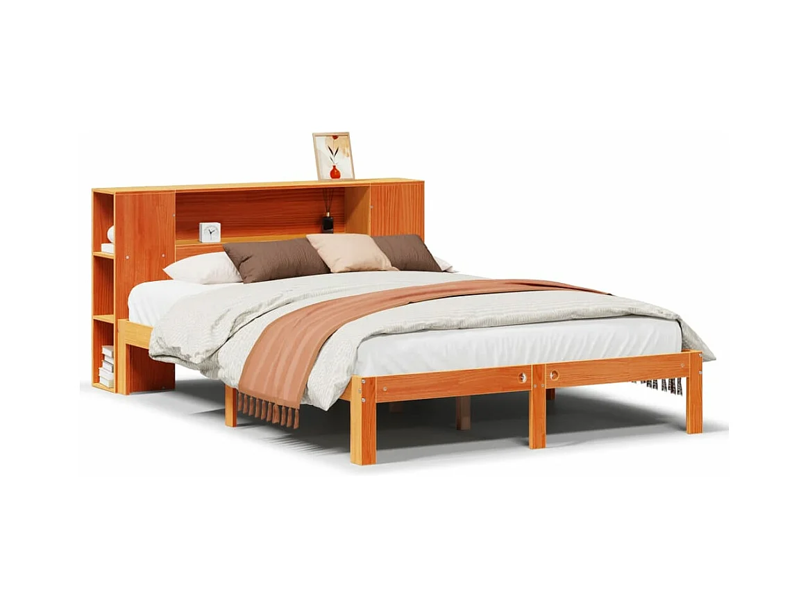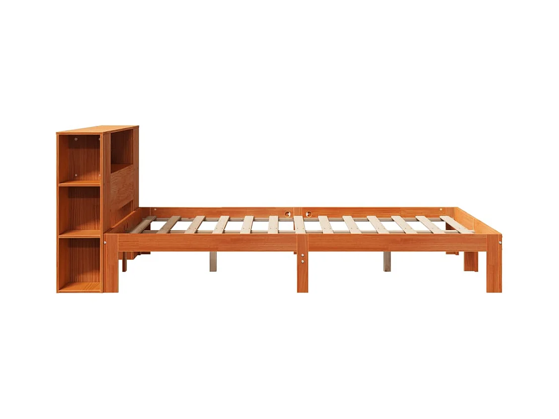 Lit bibliothèque sans matelas cire marron 135x190 cm pin massif