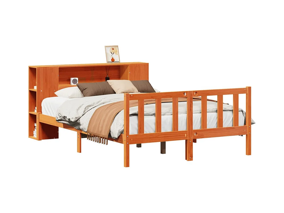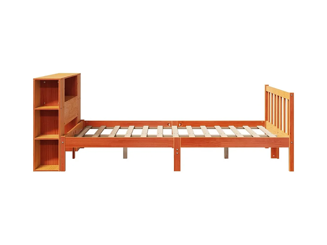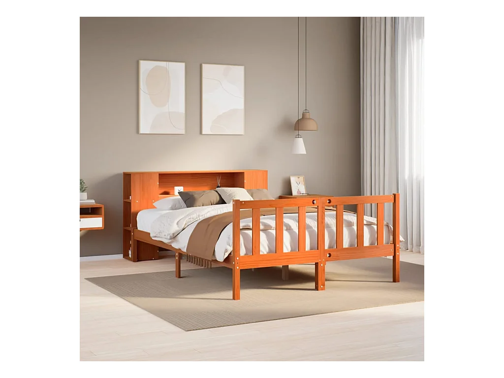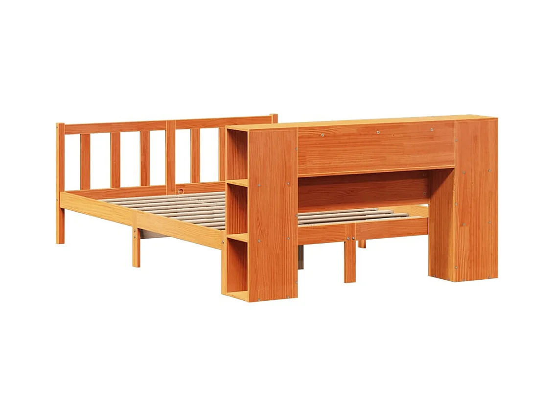 Lit bibliothèque sans matelas cire marron 140x200 cm pin massif