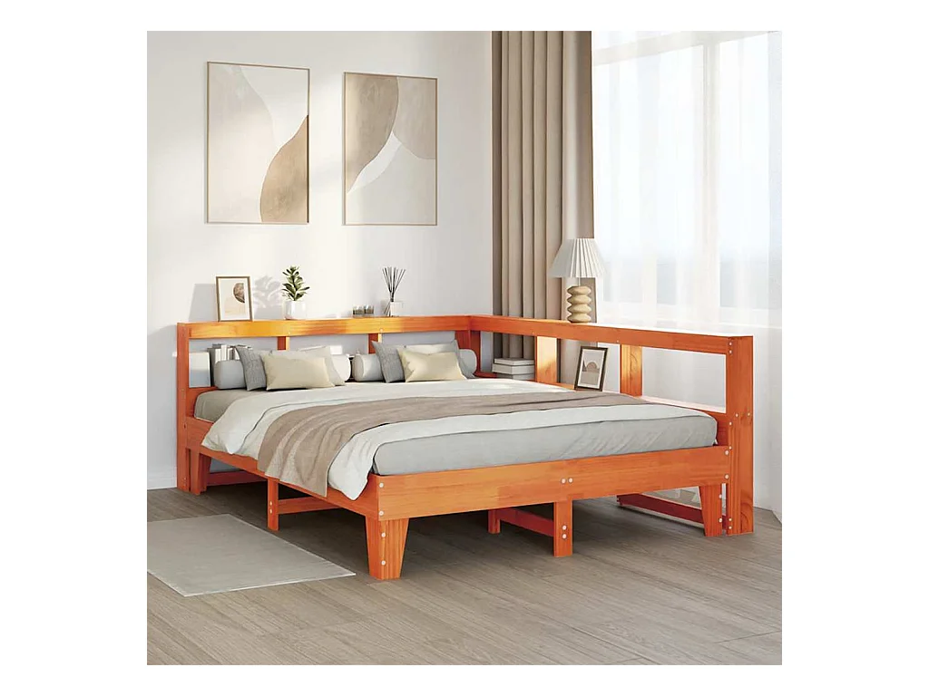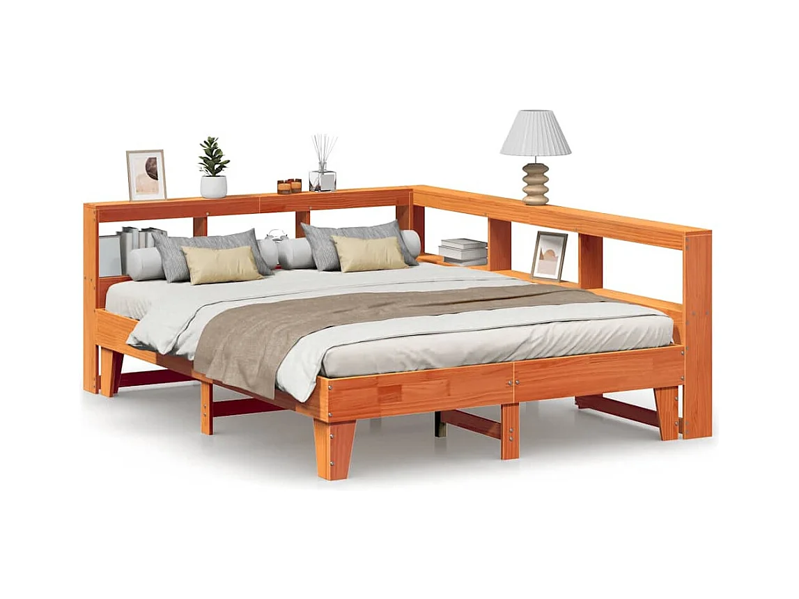 Lit bibliothèque sans matelas cire marron 140x200 cm pin massif