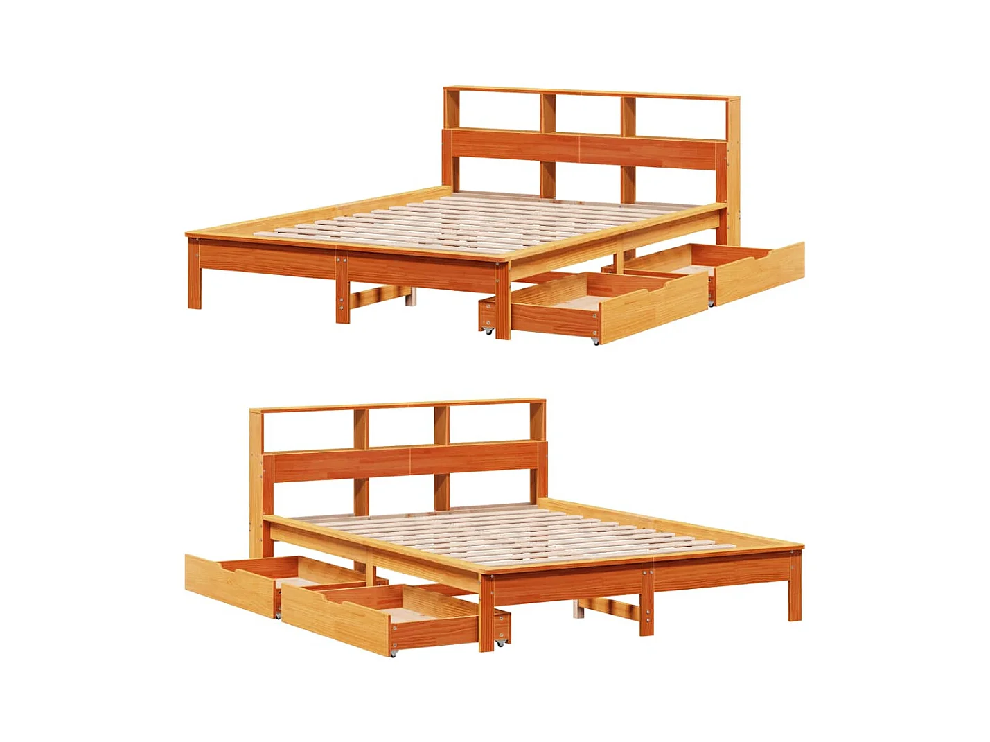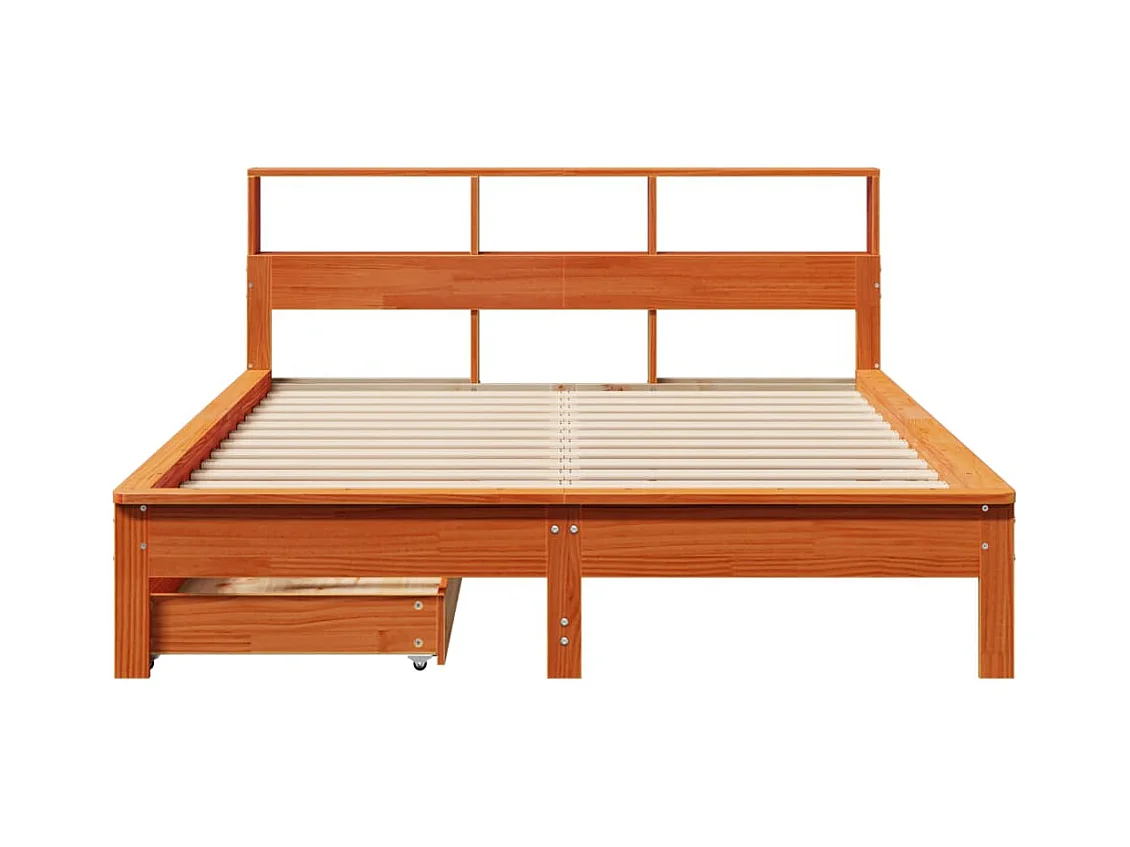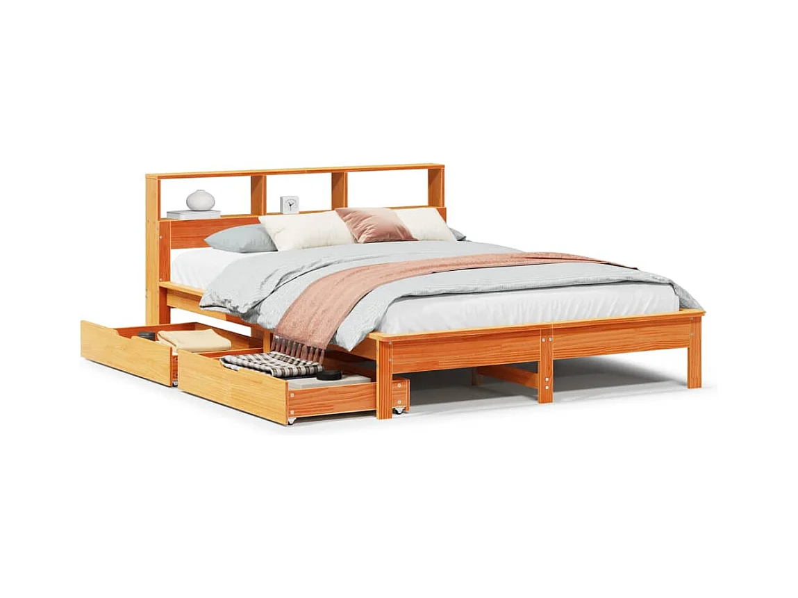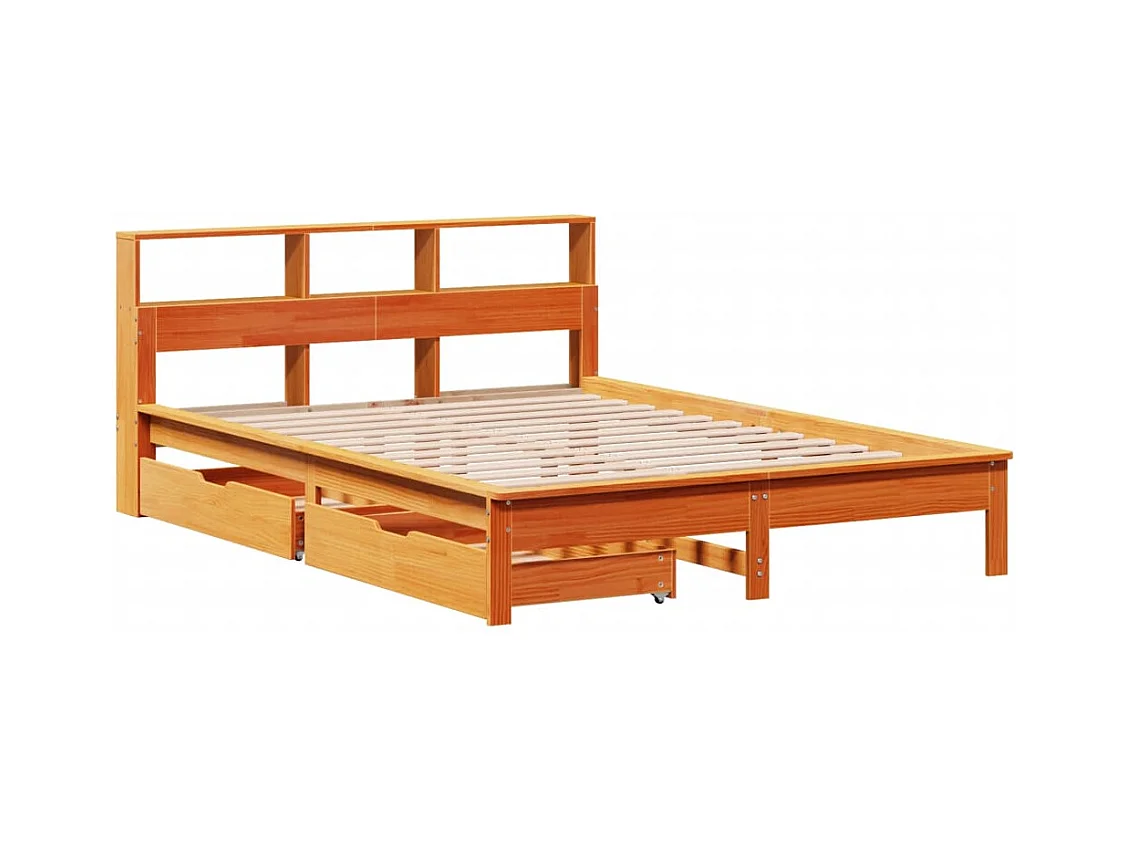 Lit bibliothèque sans matelas cire marron 150x200 cm pin massif