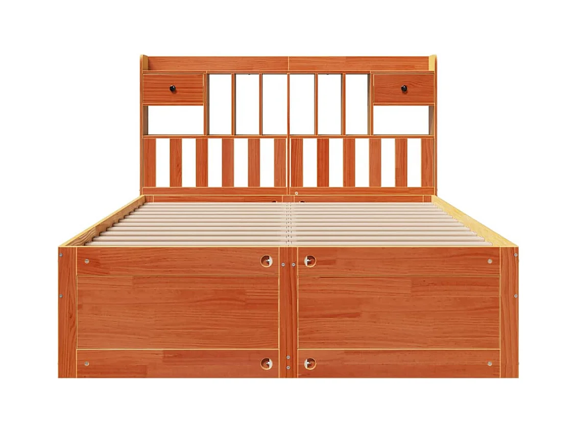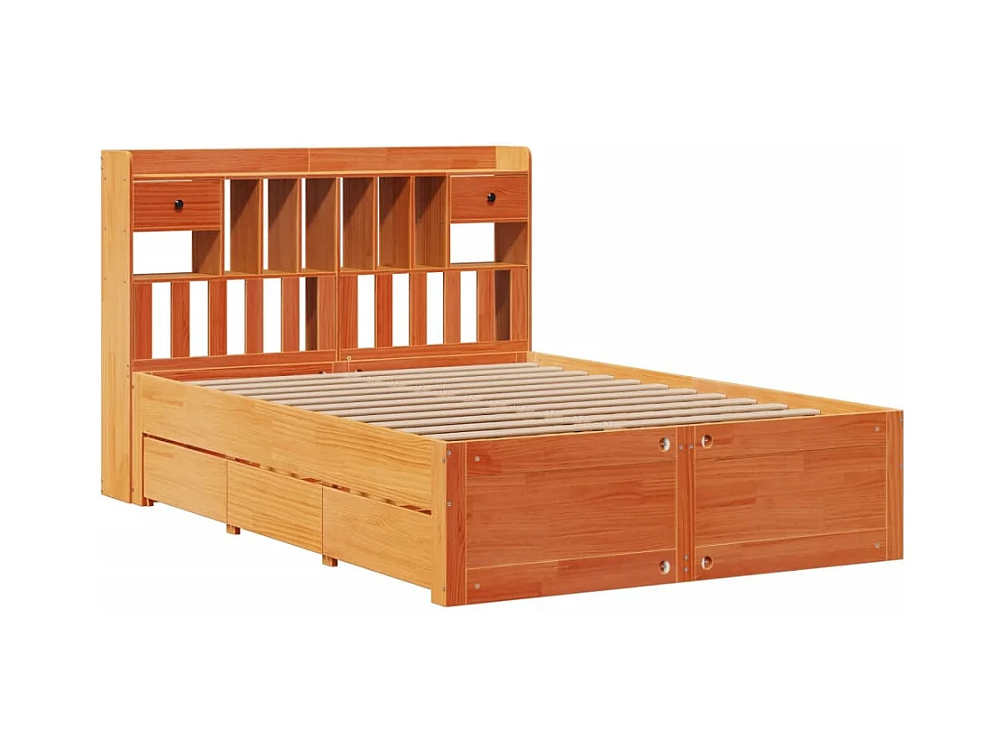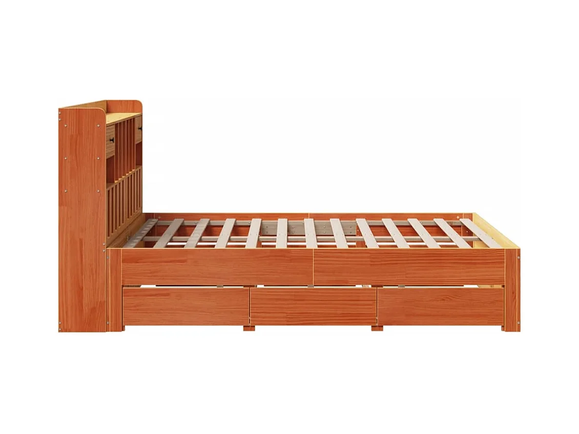 Bed met boekenkast zonder matras grenenhout wasbruin 160x200 cm