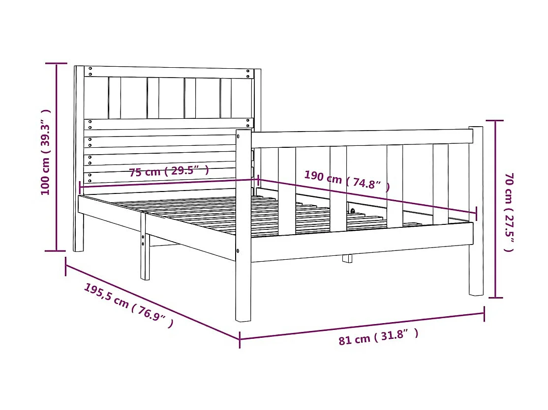 Lit Blanc Bois massif 75x190 Petit simple 2