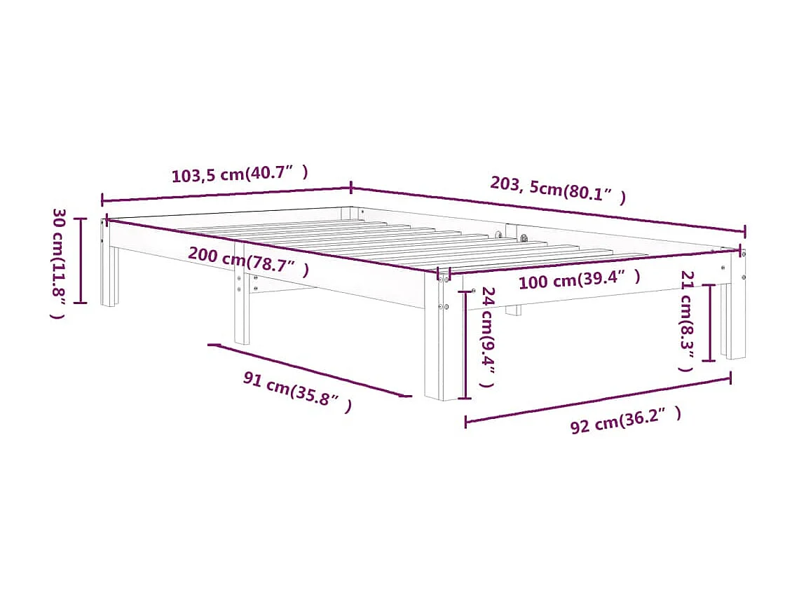 Cadre de lit sans matelas 100x200 cm bois massif de pin