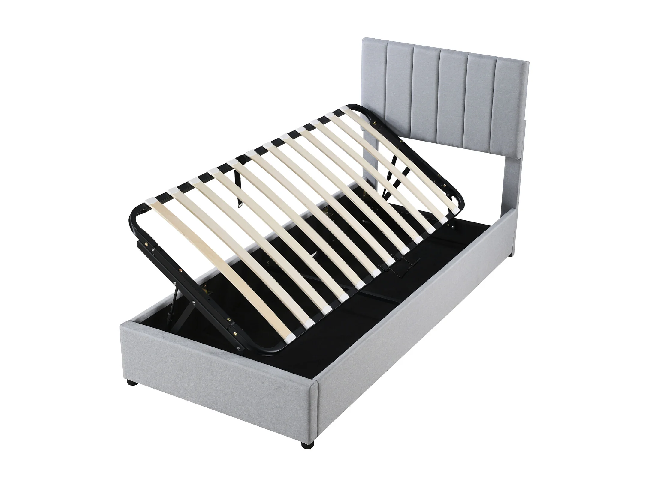 Lit box enfant 90x200 cm en lin gris doux avec rangement hydraulique – Lit sécurisé, fonctionnel et élégant pour chambre enfant