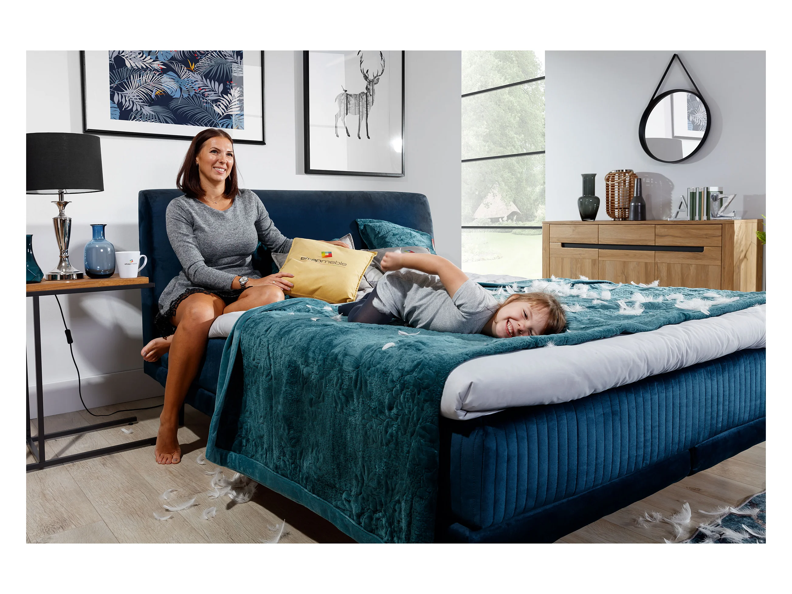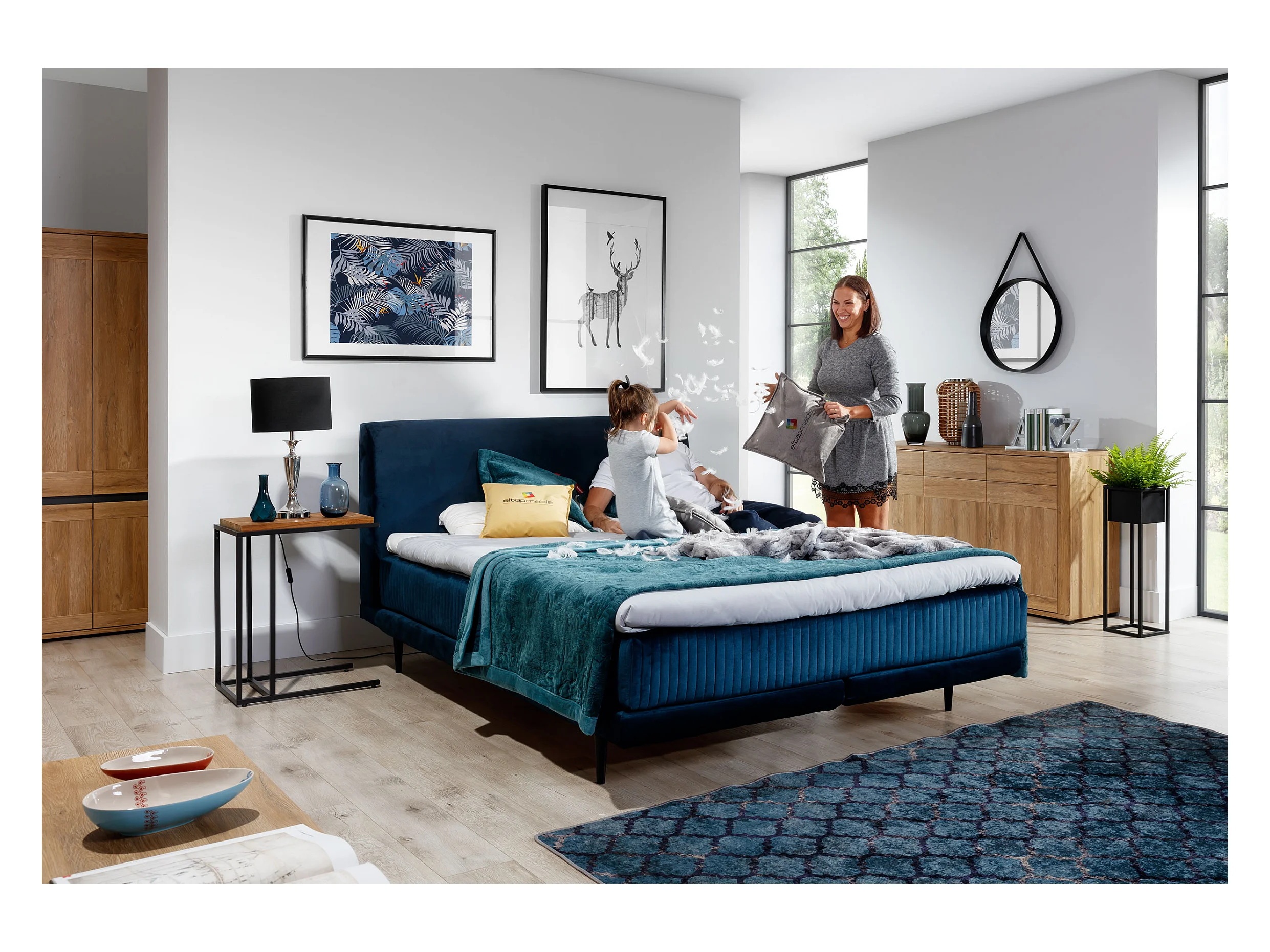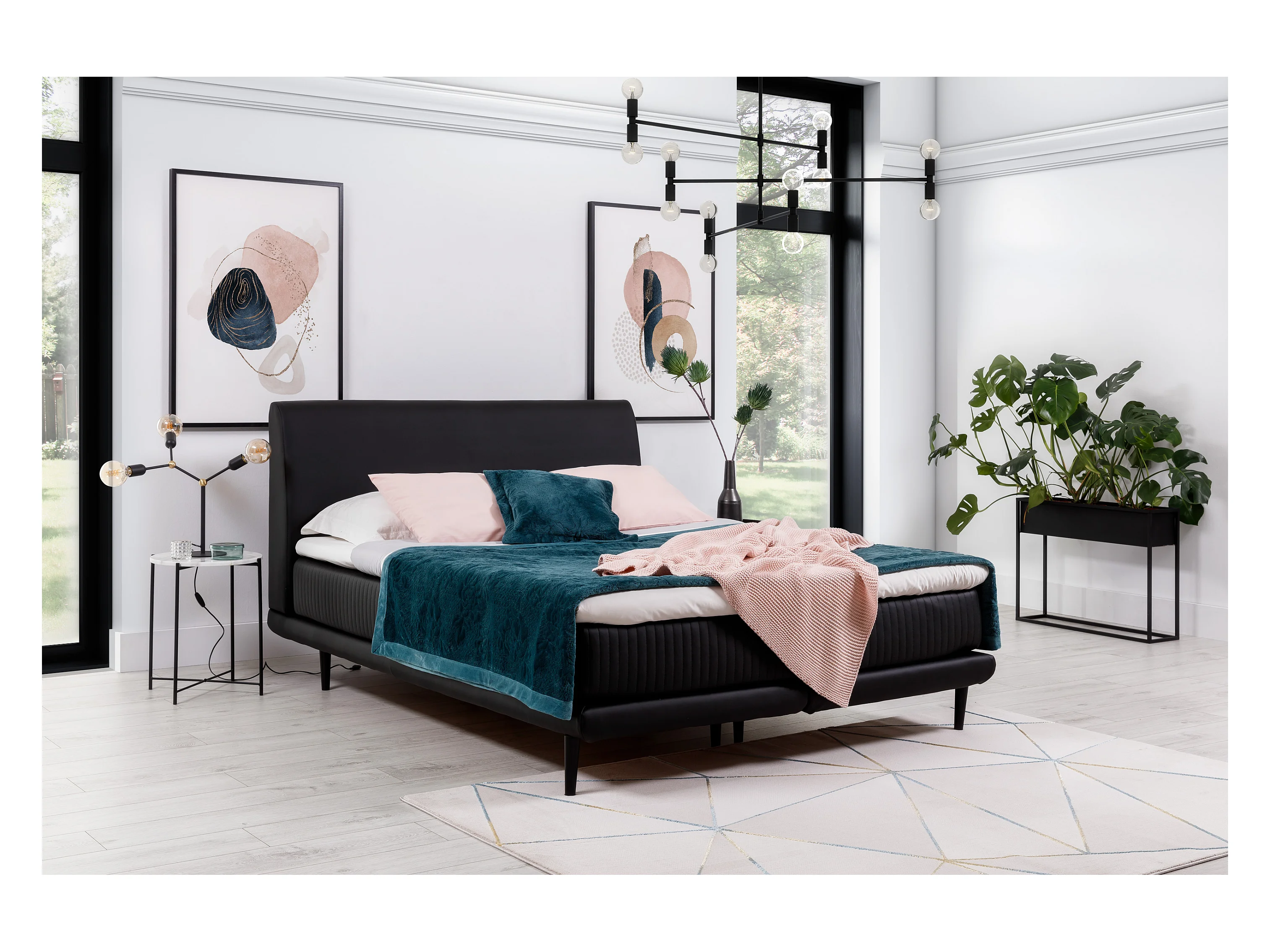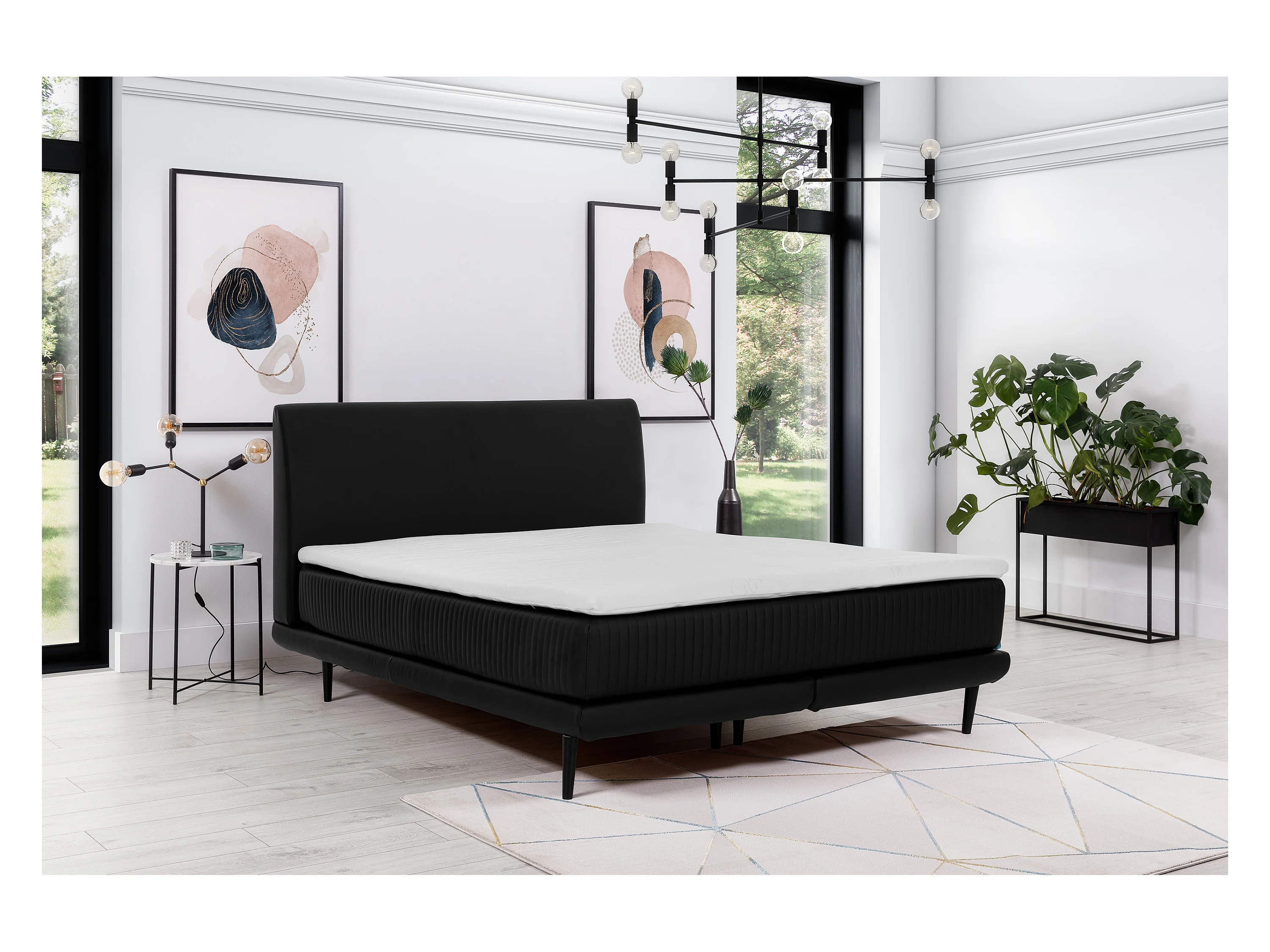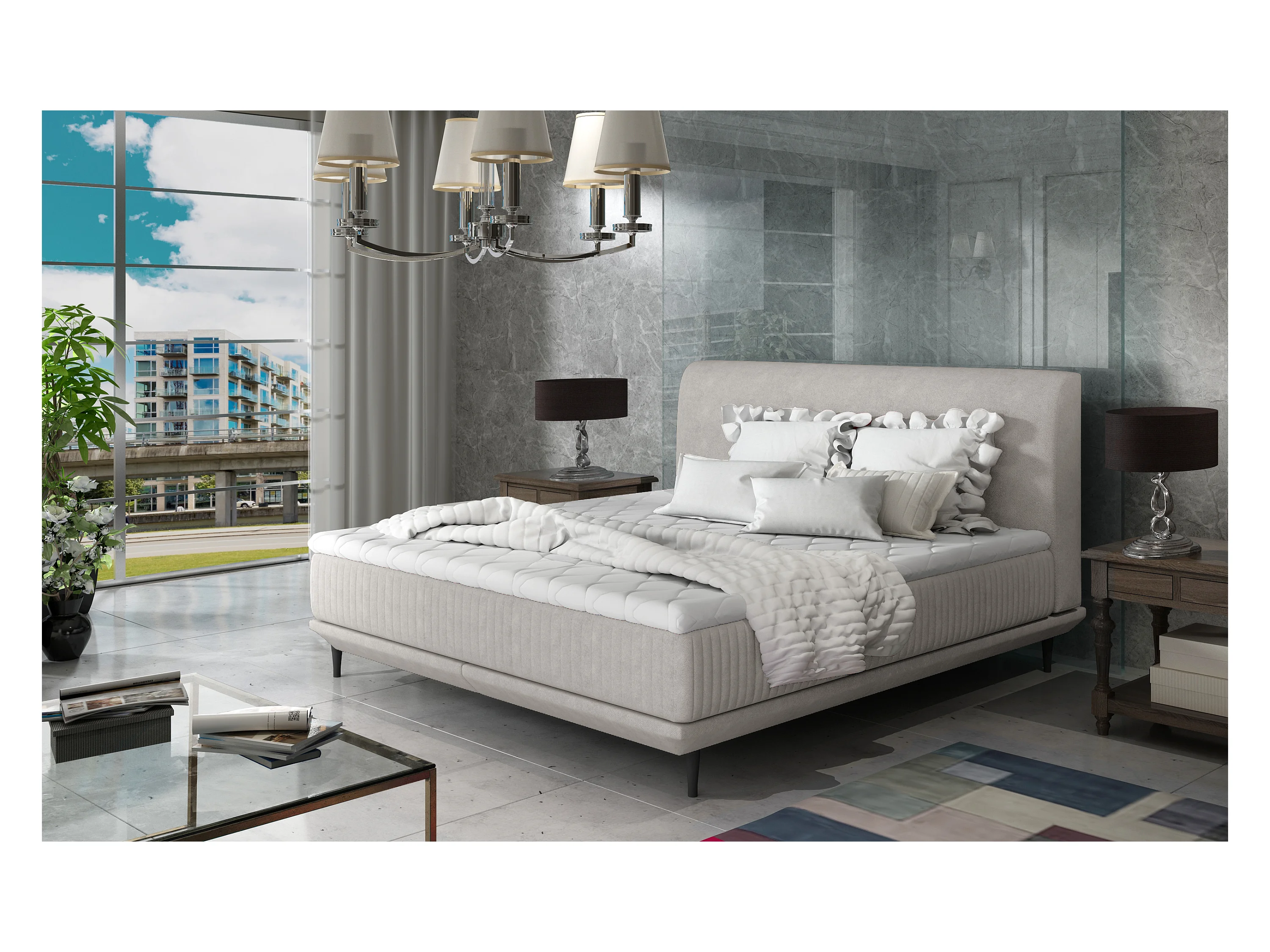 Lit boxspring 140x200 tissu beige clair sommier et matelas inclus Mastera