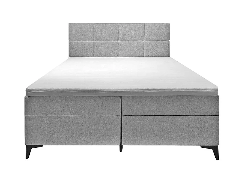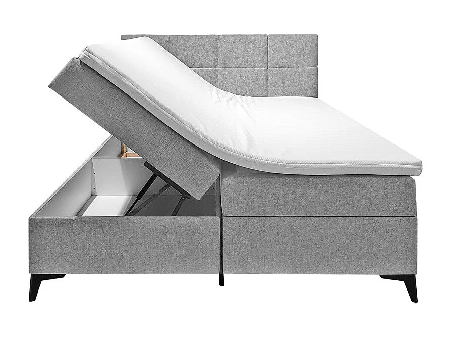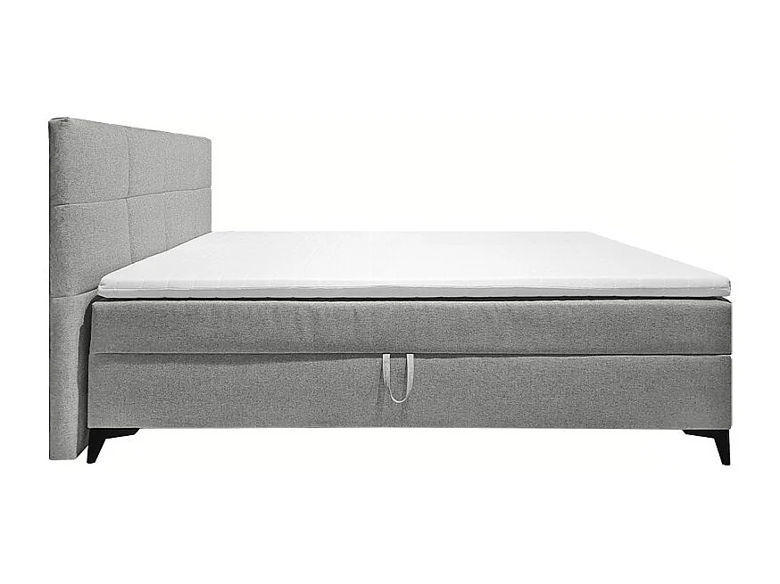 Lit boxspring 160x200 cm tissu gris 2 coffres - AISHA