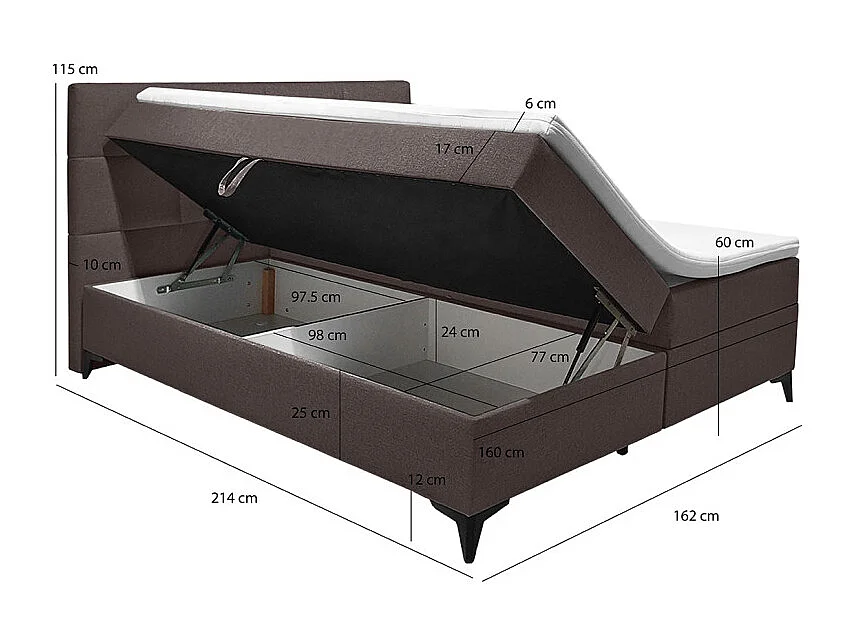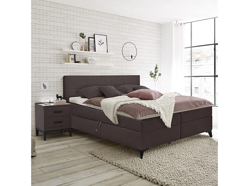 Lit boxspring 160x200 cm tissu marron 2 coffres latéraux - AISHA