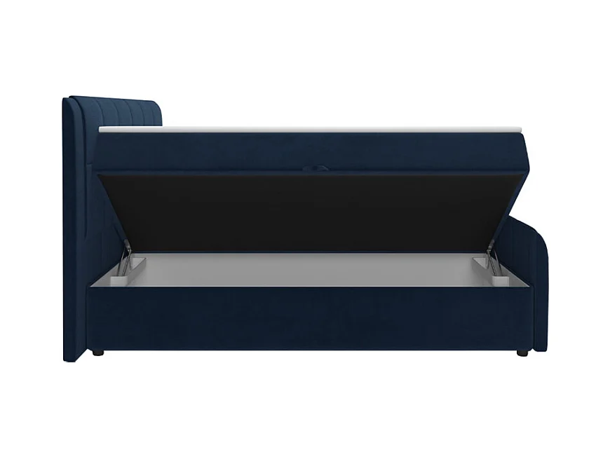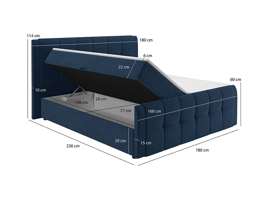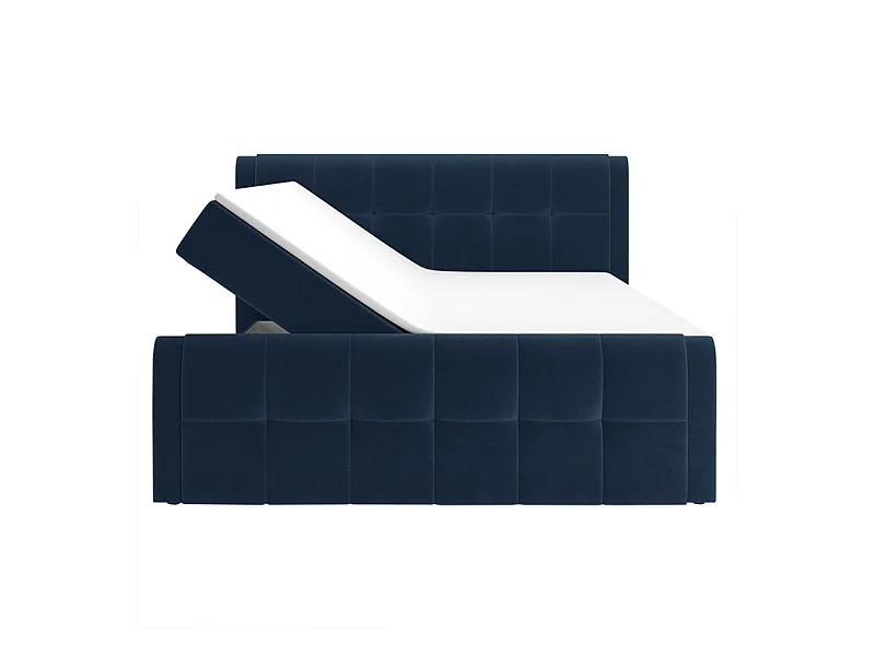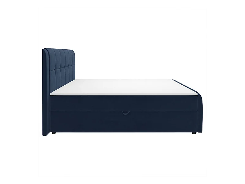 Lit boxspring 160x200 cm velours bleu 2 coffres latéraux - RIVEN