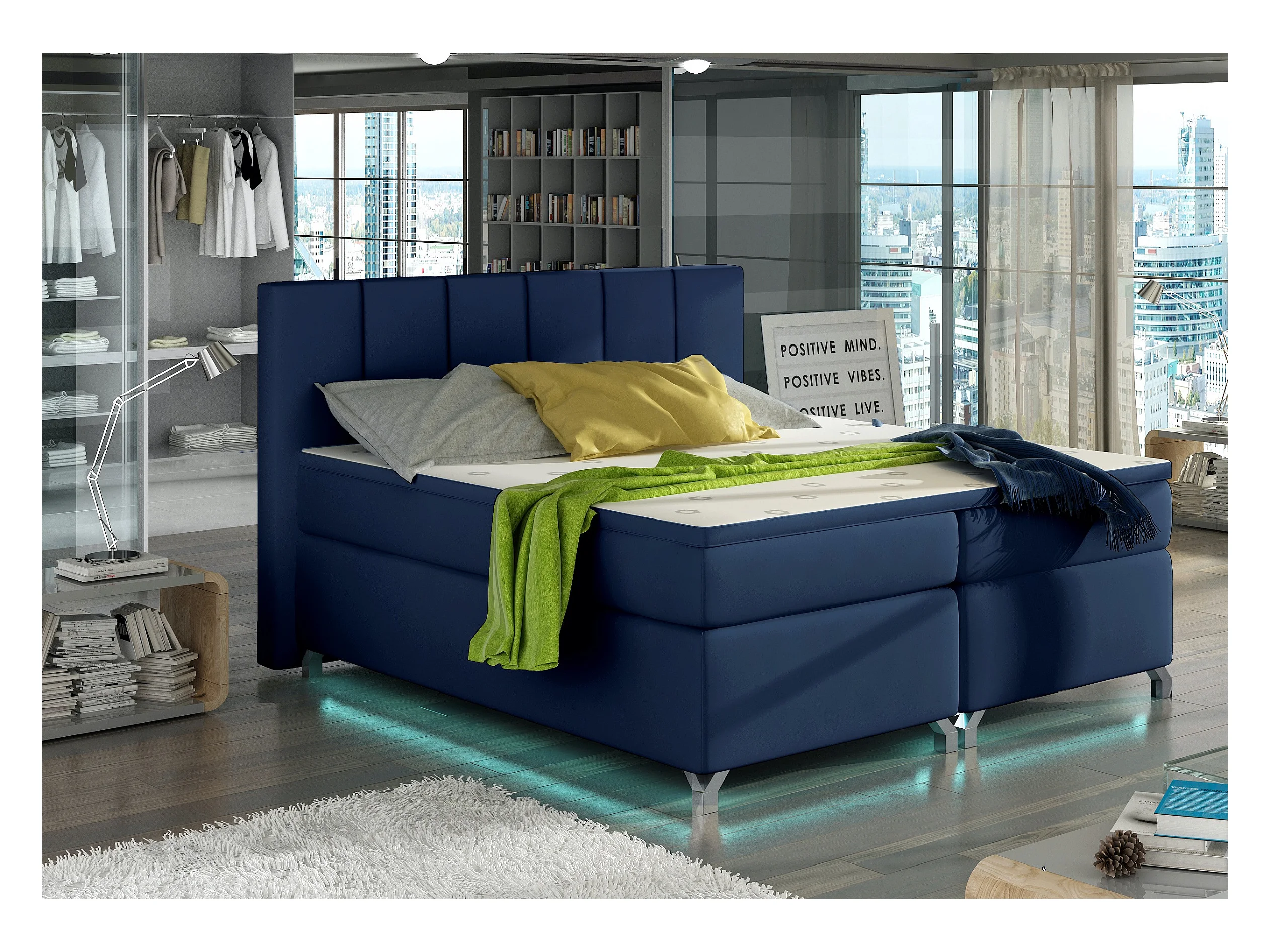 Lit boxspring 160x200 simili cuir bleu marine Balfor