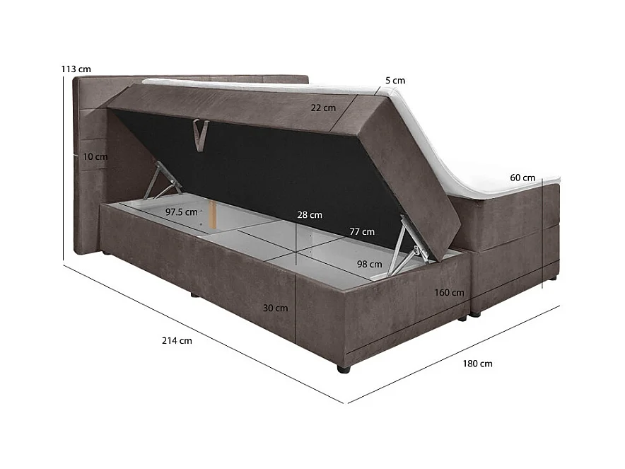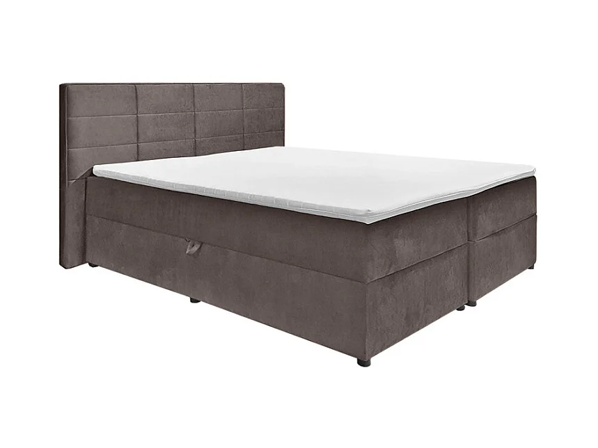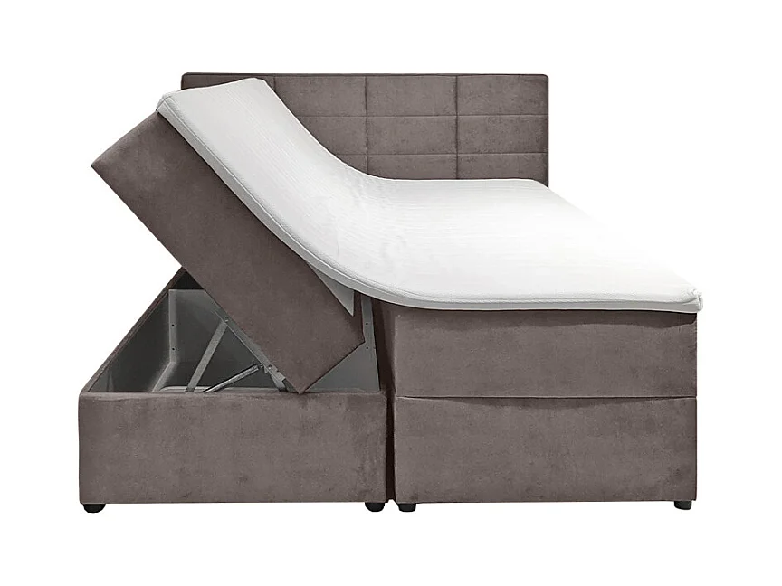 Lit boxspring 160x200 velours taupe 2 rangements - BRANDON