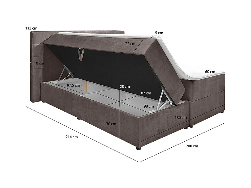 Lit boxspring 180x200 velours taupe 2 rangement latéraux - BRANDON