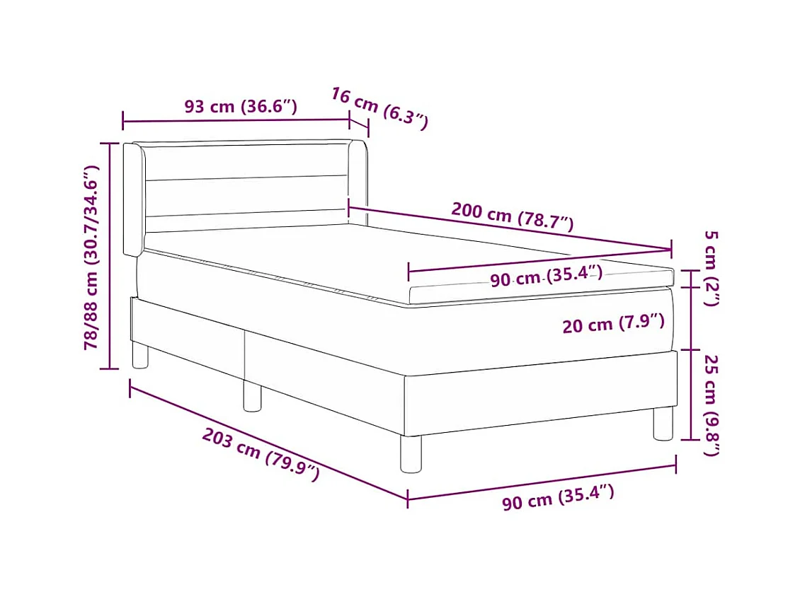 Lit boxspring avec matelas avec matelas Gris foncé 90 x 200 cm