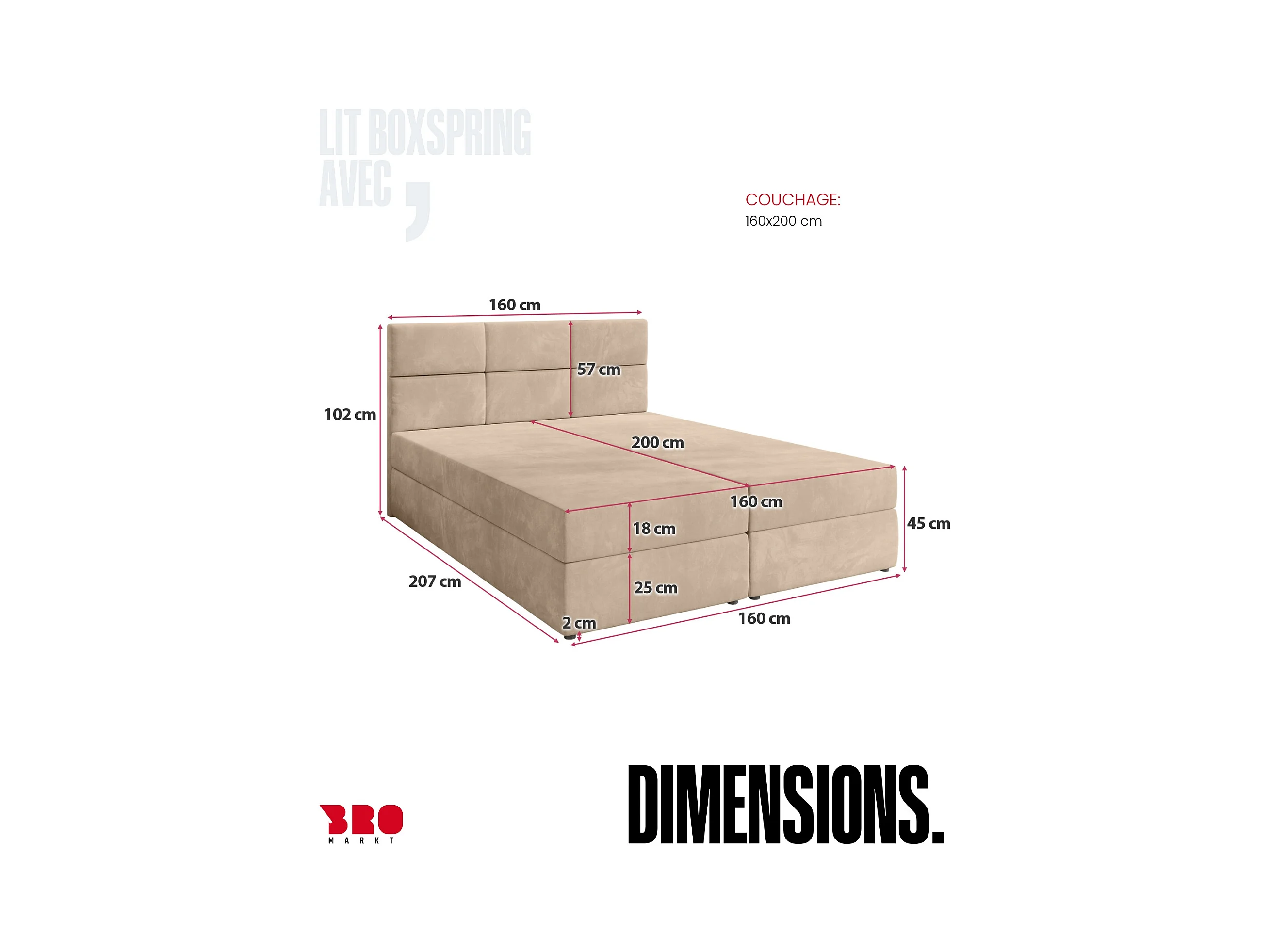 Lit boxspring avec rangement BOSTON - matelas - surmatelas - crémeux - 160x200 cm